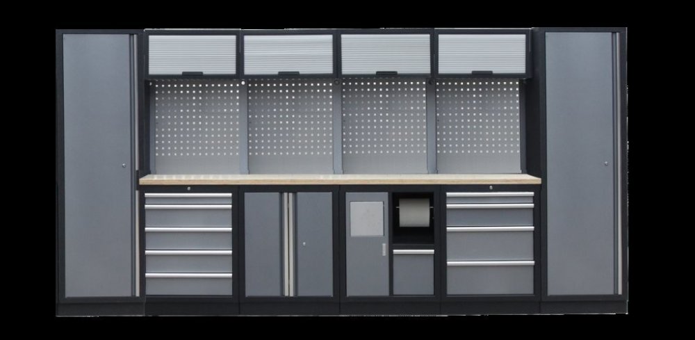 Sestava nábytku v sobě skrývá dostatečné množství úložného prostoru pro vaše nářadí, autotechniku i dílenské vybavení. V kombinaci s bytelnou pracovní deskou získáte multifunkční stěnu, se kterou vám půjde práce od ruky ve všech směrech.