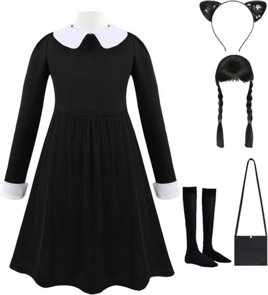 Aiceros Wednesday v černých šatech pro halloweenský černý s parukou