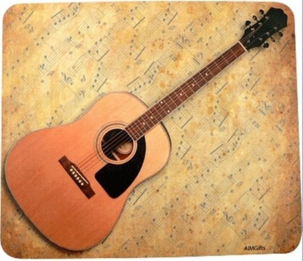 Podložka pod myš s motivem kytary, 21 x 18 cm.