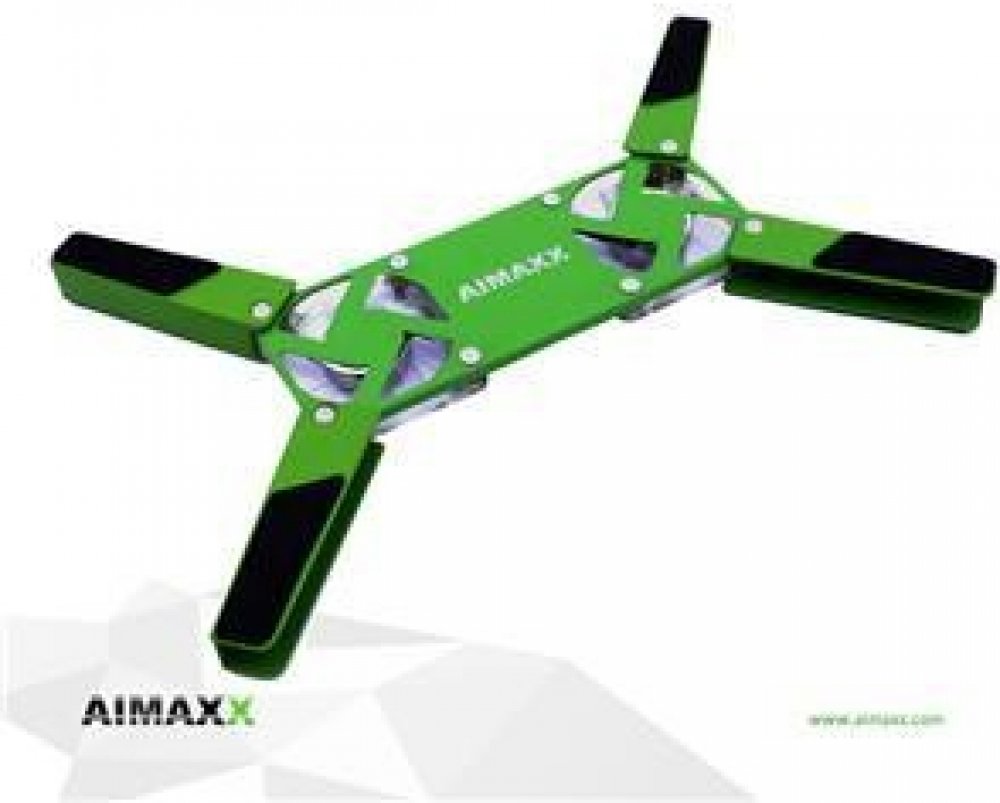 Kompaktnost a užitečnost jsou hlavními rysy AIMAXX chladicí podložky pro notebook. Celé zařízení je skládací a tedy velmi snadno přenosné. Použití ultra lehkého materiálu jen potvrzuje portabilitu zařízení. Svěží zelená AIMAXX barva je podtržena zelený podsvícením. Gumové podložky na produktu zajišťují měkký, ale stabilní kontakt s povrchem a s notebookem.