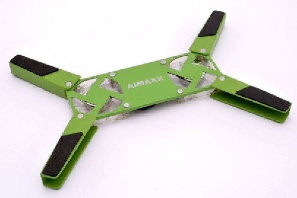 Kompaktnost a užitečnost jsou hlavními rysy AIMAXX chladicí podložky pro notebook. Celé zařízení je skládací a tedy velmi snadno přenosné. Použití ultra lehkého materiálu jen potvrzuje portabilitu zařízení. Svěží zelená AIMAXX barva je podtržena zeleným podsvícením. Gumové podložky na produktu zajišťují měkký, ale stabilní kontakt s povrchem a s notebookem.