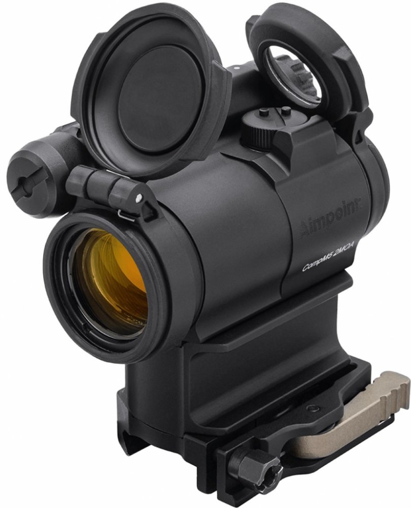 Kolimátor Aimpoint CompM5 CompM5 je vysoce výkonný zaměřovač s červeným bodem, vyvinutý tak, aby odolal extrémně náročnému zacházení a okolním situacím, aniž by zvýšil váhu vybavení uživatele. Nové inovativní čočky s vylepšenými reflexními vrstvami radikálně zlepšují tvar bodu 2 MOA. Díky tomu se tato optika dokonale hodí k zvětšovacím modulům 3XMag-1 a 6XMag-1. Zaměřovač je dále vybaven výklopnými krytkami objektivu, přední kryt objektivu je černý a zadní průhledný. Model CompM5 má přihrádku na baterii v horní části. Dodáváno včetně mezikusu 39 mm a rychloupínací montáže LRP (Picatinny). Klíčové vlastnosti Montážní základna je připevněna k tělu zaměřovače, aby absorbovala zpětný ráz Držák LRP a 39 mm distanční podložka - připraveno pro AR15 Výklopné kryty objektivu – přední strana pevná a zadní strana je průhledná – umožňuje uživateli zaměřovat s oběma očima