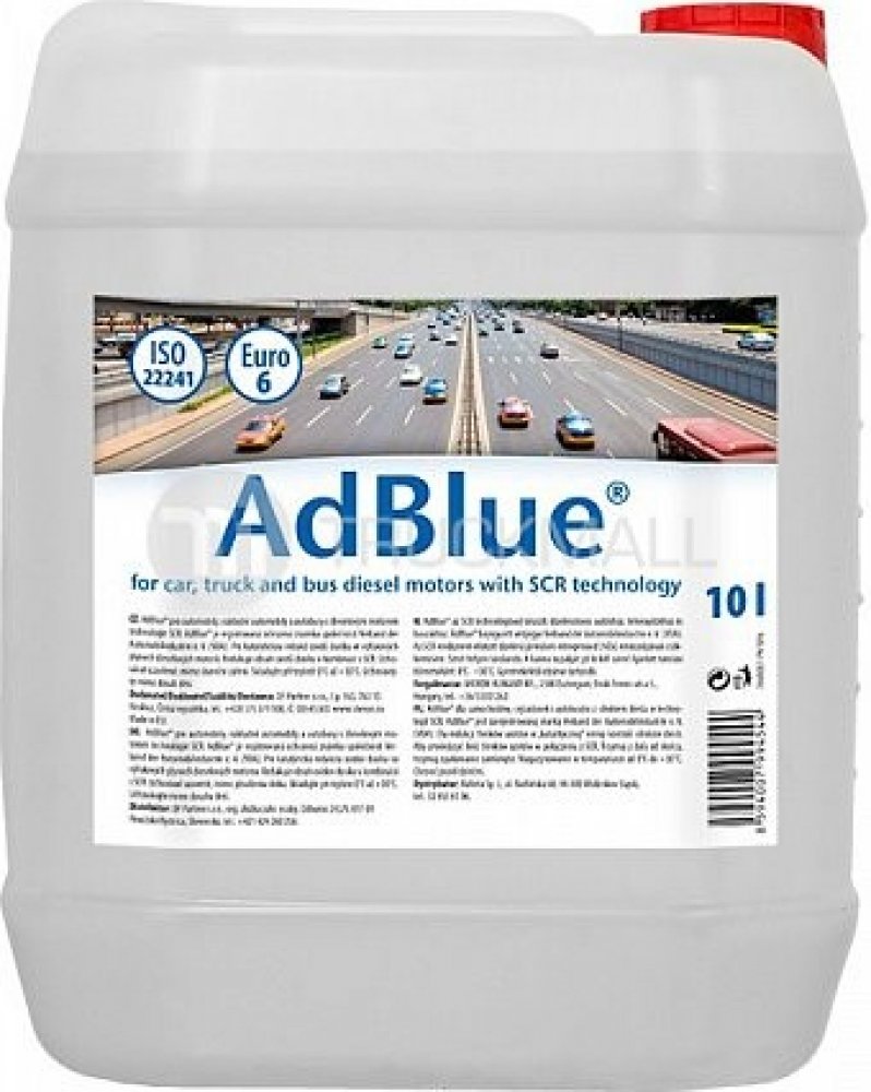 Vlastnosti:Určeno především pro nákladní automobily, nově však i pro nejmodernější osobní automobily, které jsou pro jeho používání vybaveny.Čirá bezbarvá kapalina syntetické močoviny o vysoké chemické čistotě.Není nebezpečná pro zdraví člověka.Automobil s naftovým motorem má AdBlue® uloženo v samostatné nádrži, odděleně od nádrže s naftou.Při provozu motoru dochází k automaticky řízenému vstřikování AdBlue® do výfukového systému.