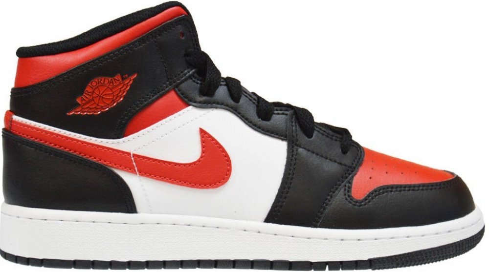 Air Jordan 1 Mid Black Fire Red GS 554725-079