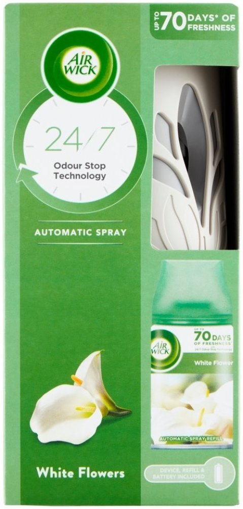 Posilte vůni příběhu Vašeho domova s automatickým sprejem od Air Wick Life Scents Freshmatic. Vylepšete si náladu s vůní čerstvě řezaných bílých květů. Air Wick Freshmatic uvolňuje dávky nepřetržité svěží vůně, takže Váš domov vždy přívětivě voní. Stačí nastavit osvěžovač vzduchu na Vaši preferovanou intenzitu vůně a vychutnejte si vůni, kterou Vám přináší Bílé květy frézie. Při nízkém nastavení, osvěží Vaši domácnost až na 60 dní.