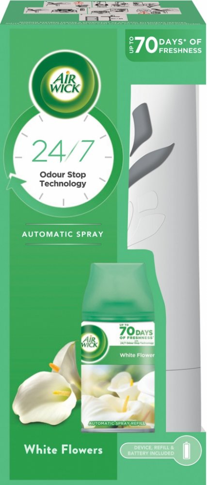 Naplňte svůj domov kontinuální, svěží vůní po dobu až 60 dní s Air Wick Freshmatic automatickými spreji. Neutralizuje pachy a vůně vašeho domova. Poskytuje až 60 dní nepřetržité vůně. Pověste na zeď, nebo umístěte na polici nebo skřín. Vyberte si ze tří nastavení pro dosažení požadované úrovně vůně. Až 2400 dávek vůně v každém náhradním balení.