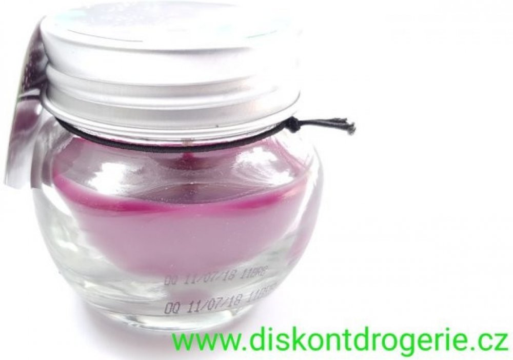 Svíčka v elegantní skleněné nádobě s kovovým vrškem