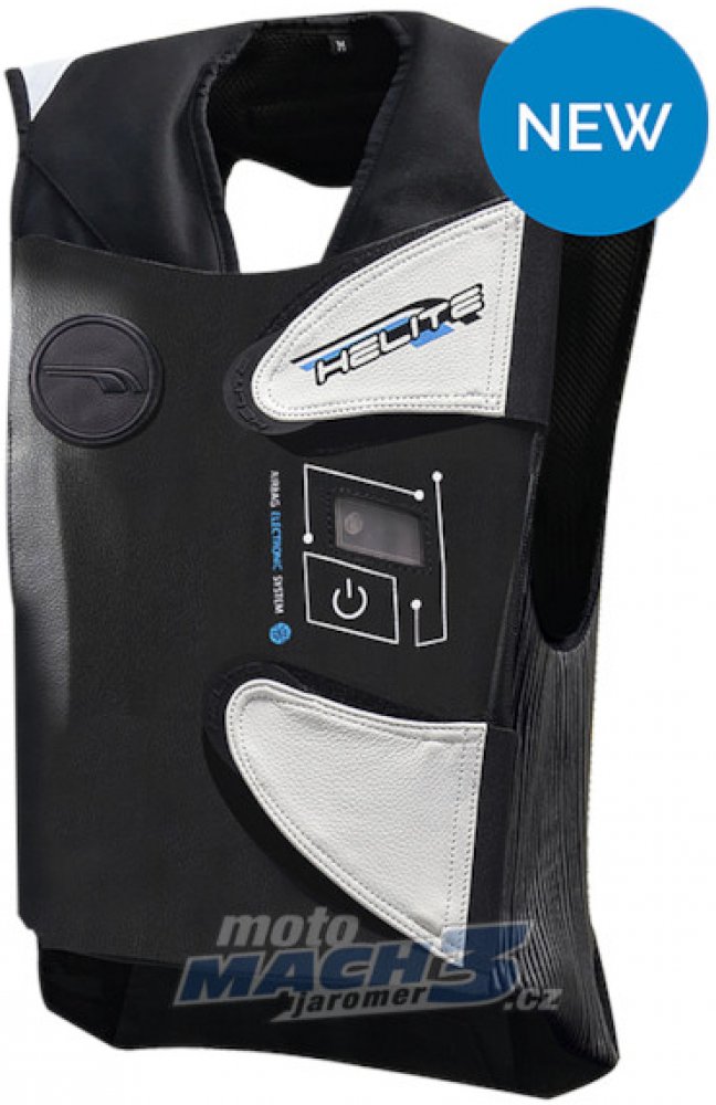 Airbag e-GP AIR integruje elektronický systém Helite. Snadné použití, stačí stisknout tlačítko třikrát pro zapnutí nebo vypnutí systému.