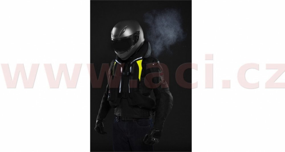 - v případě aktivace airbagu dojde k nafouknutí v oblasti celé vesty (zádová část, hrudní část a krční límec)