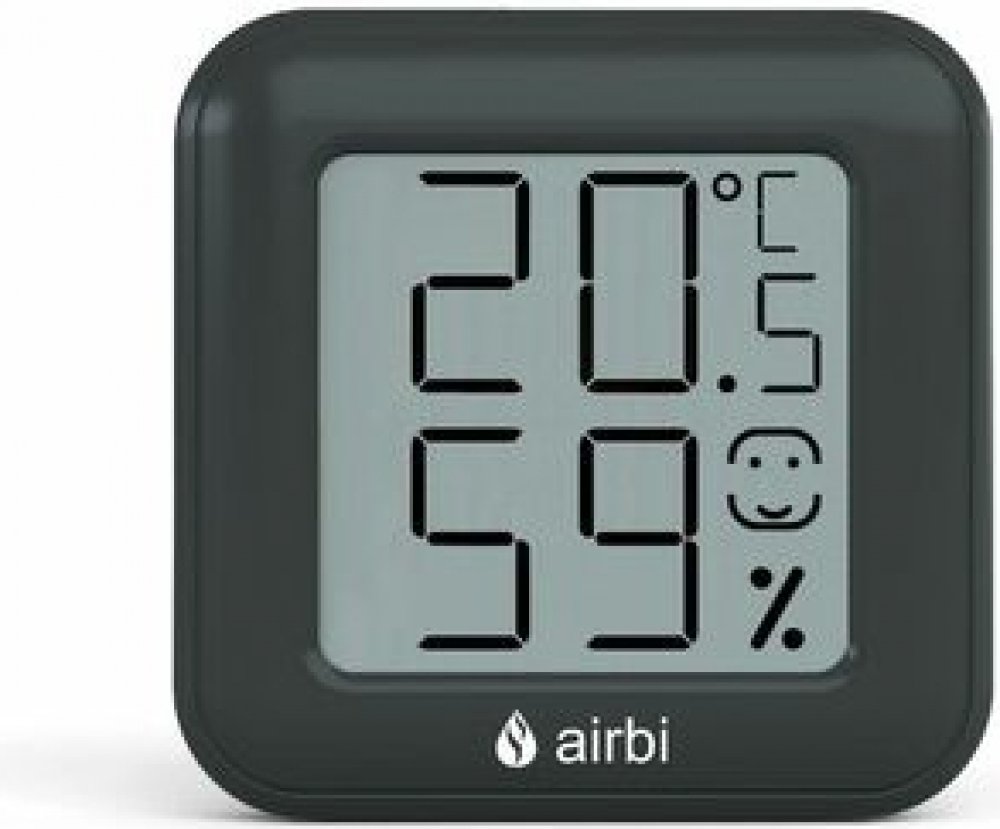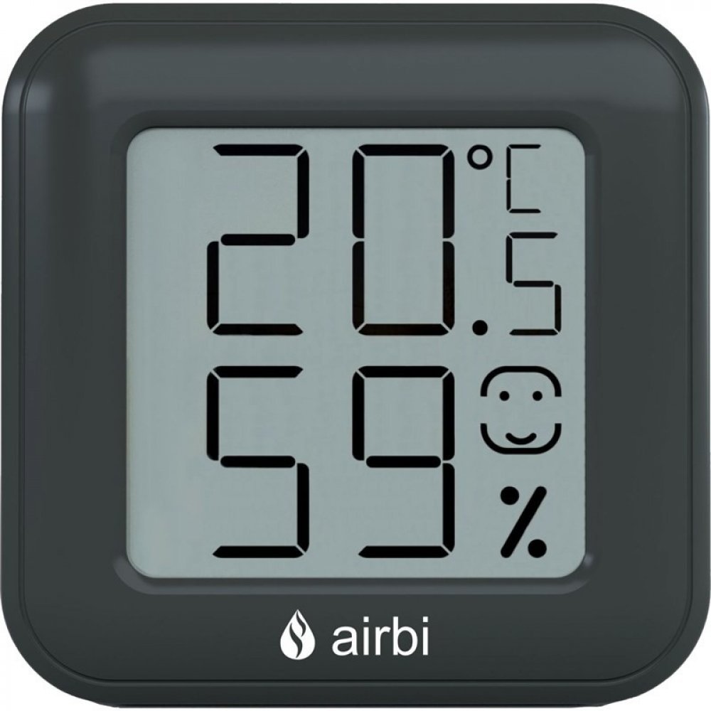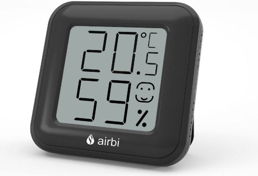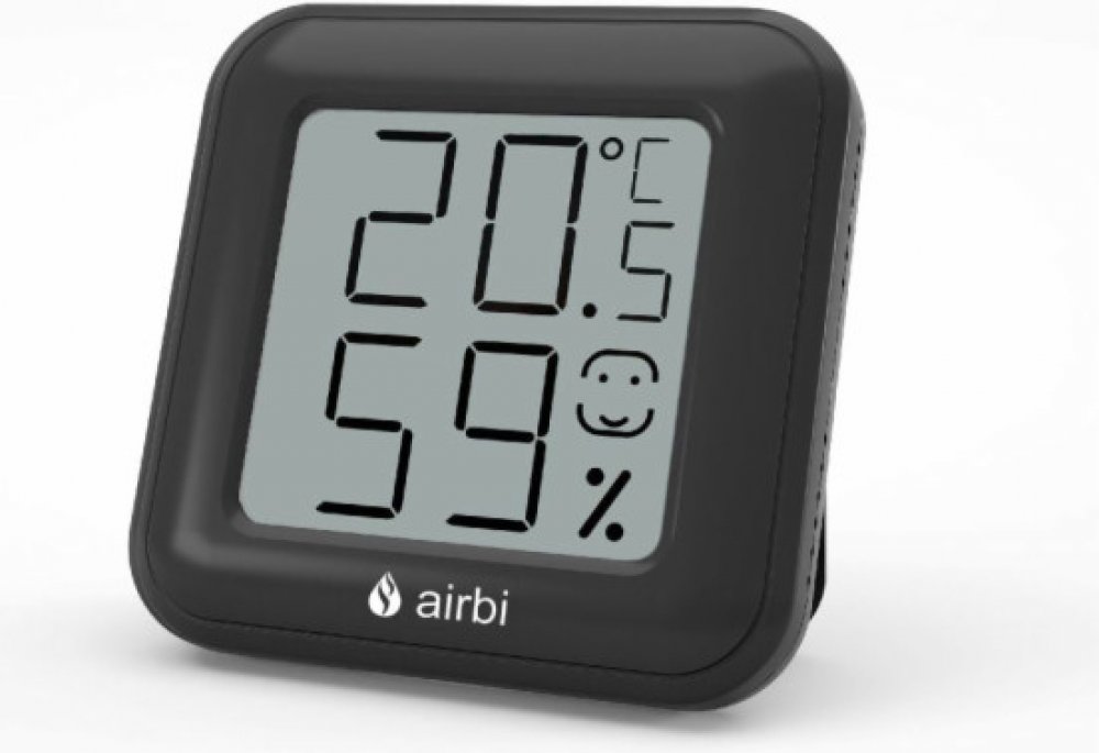 Digitální teploměr s vlhkoměrem Airbi SMILE měří pokojovou teplotu v rozsahu -20 °C až +60 °C a pokojovou vlhkost v rozsahu 20 až 95 %. Displej je rozdělen na dvě poloviny, v horní je zobrazena teplota, v dolní části je zobrazena naměřená vlhkost a smajlík informující o kvalitě klimatu v místnosti. Kromě toho si přístroj pamatuje také naměřené MAX/MIN hodnoty od posledního manuálního vyresetování.