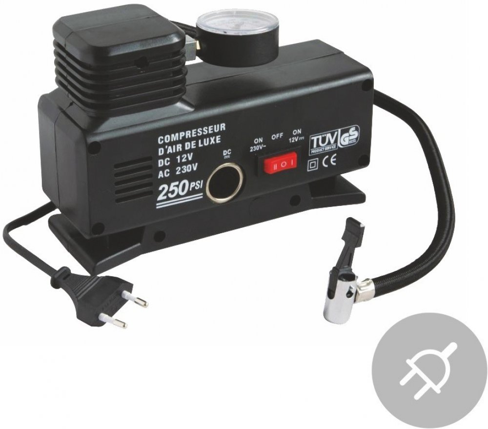 - kvalitní kompresor vhodný jak do auta, tak do domácnosti nebo firmy, díky možnosti připojení na 12V nebo 230V