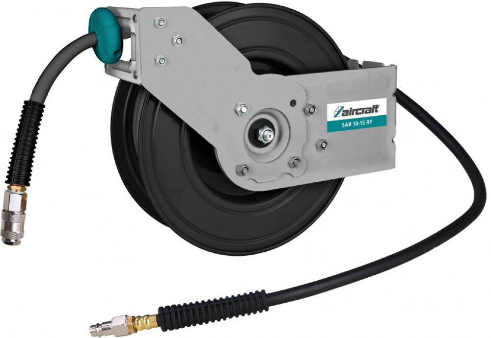 Navíjecí buben s vysoce odolnou hadicí proti oleji s vnitřním průměrem 9,5 mm a délkou 15 m.
