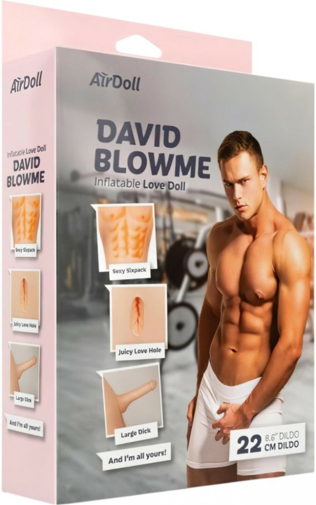 AirDoll David Blowme je realistická nafukovací mužská panna v životní velikosti, která ti nabídne opravdu autentický zážitek.Proč je super?Životní velikost pro maximálně realistické hrátky.Nafukovací dildo o délce 22 cm pro intenzivnější penetraci.Svůdný anální otvor pro různorodé potěšení.Vymakané břišní svaly pro lepší vizuální zážitek.Snadno se nafukuje a skladuje.Na co si dát pozor:Před a po použití pečlivě očisti produkt šetrným čisticím prostředkem.Používej jen lubrikant na vodní bázi, abys prodloužil životnost panny.Přesvědč se, že je dobře nafouknutá - to zajistí správné použití.Jak používat:Nafoukni pannu přiloženou nebo ruční pumpou.Nastav ji do pohodlné polohy a využij svůdný anální otvor nebo nafukovací dildo podle svých představ.Po použití vypusť vzduch, očisti a ulož na suché a chladné místo.Balení obsahuje:1x AirDoll David Blowme nafukovací pannaNávod k použitíVlastnosti produktu:Materiál: odolné PVCRozměry: životní velikostVelikost dilda: 22 cmHmotnost: 450 g