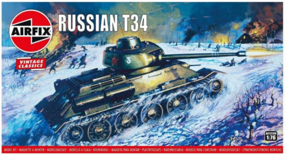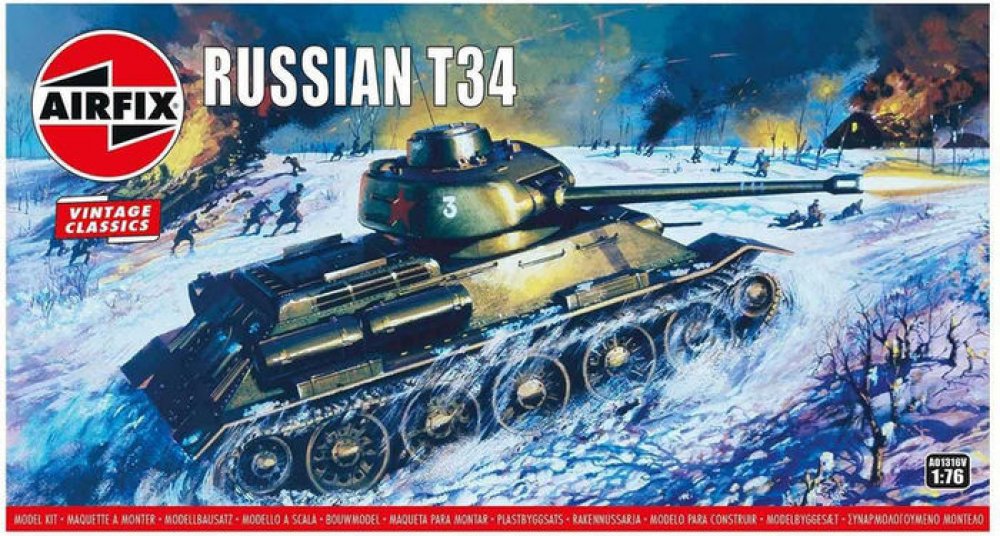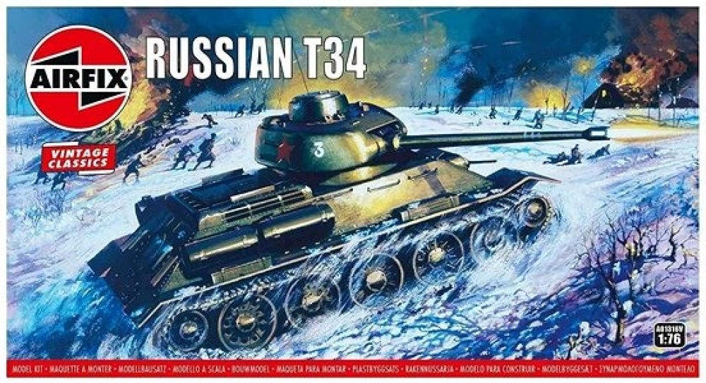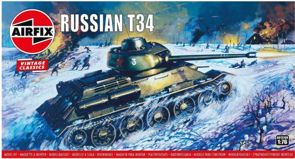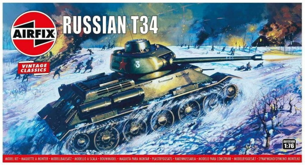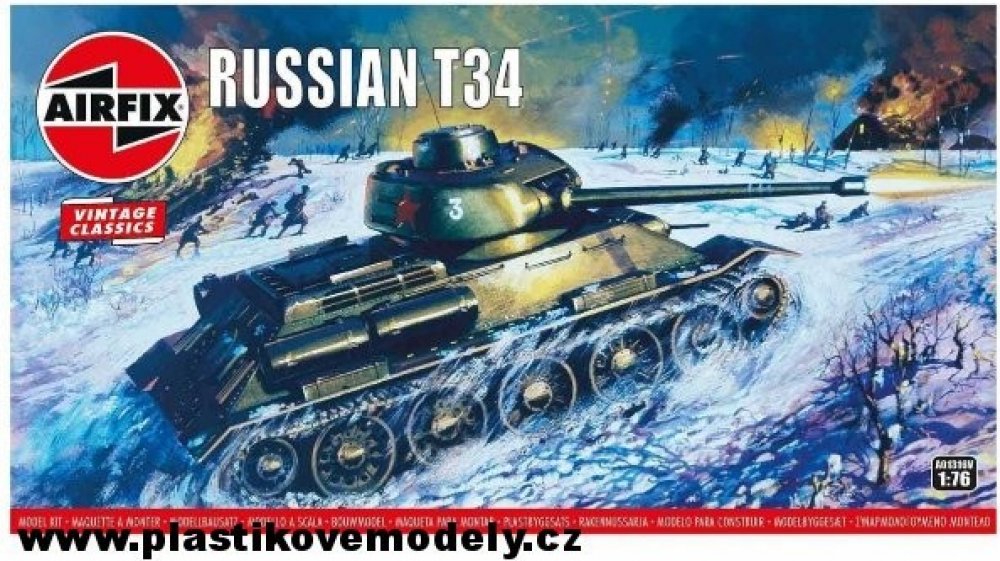 Model tanku ke slepení. Velikost: 1:76; 9,5 cm. Balení obsahuje: 58 dílků ke slepení. Podrobný popis:Model tanku ke slepení. Velikost: 1:76; 9,5 cm. Balení obsahuje: 58 dílků ke slepení. Informace o originálu: T-34 představoval zdaleka nejlepší koncepci tanku v celé druhé světové válce. Kromě toho, že se mohl pochlubit vynikající kombinací palebné síly, pancéřování, pohyblivosti a ideálního tvaru, stálo celé jeho skvělé technické provedení na jednoduchosti a odolnosti. Díky tomu byl velmi spolehlivý a navíc ho bylo možné vyrábět ve značném množství. Informace o modelu: Původní podoba modelu z roku 1968, ilustrace na obalu od Roye Crosse, 1968. Užijte si nostalgické chvíle s modelovou řadou Airfix Vintage Classics. Detaily modelu: Měřítko: 1:76 Počet dílů: 58 Délka: 95 mm Šířka: 40 mm Obtížnost: 2 Body Flying Hours: 1 Doporučeno pro děti od 8 let. Upozornění: Nebezpečí udušení! Výrobek obsahuje malé části. NEVHODNÉ PRO DĚTI DO 3 LET!