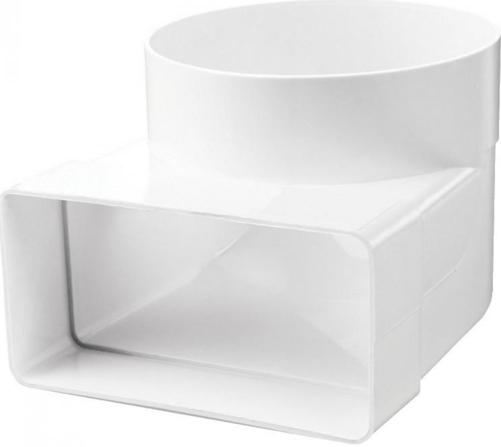 Přechodové koleno v úhlu 90 stupňů se spojkou (koleno kulatá/hranatá) je určeno k přechodu mezi různými tvary plastového potrubí v průměru 100, a to tak, že se do sebe jednoduše zasunou. Koleno je vhodné do max.teploty 45°C. Je vyrobeno z plastu ABS v bílé barvě.