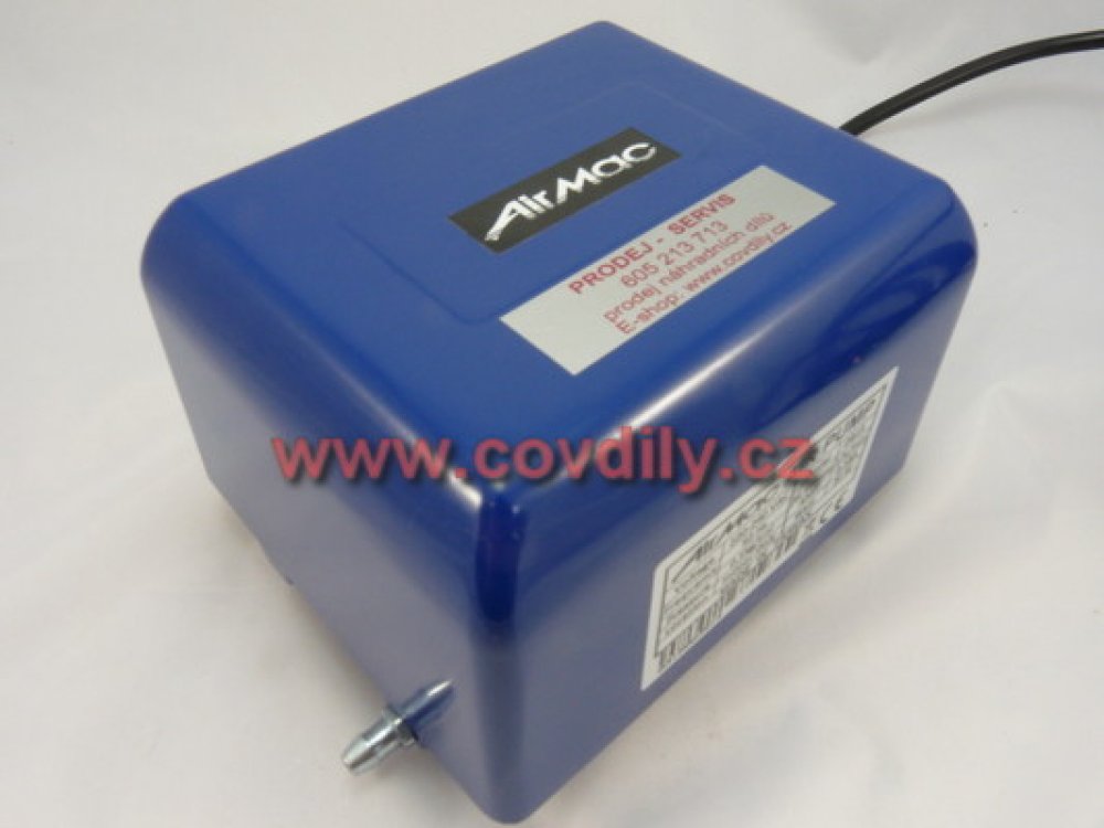 Membránové dmychadlo DB 15 AIRMAC bezolejový provoz, tichý chod, jednoduchá údržba, využití ve venkovním i vnitřním prostředí, nízká spotřeba elektrické energie, ochrana cívek proti přehřívání, Průtok vzduchu , při tlaku 0 mbar - 24 l/min, při tlaku 50 mbar - 21 l/min, při tlaku 100 mbar - 17 l/min, při tlaku 150 mbar - 13 l/min, napětí 230 V, frekvence 50 Hz,