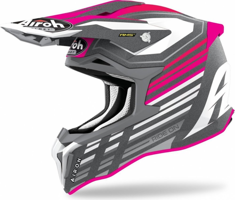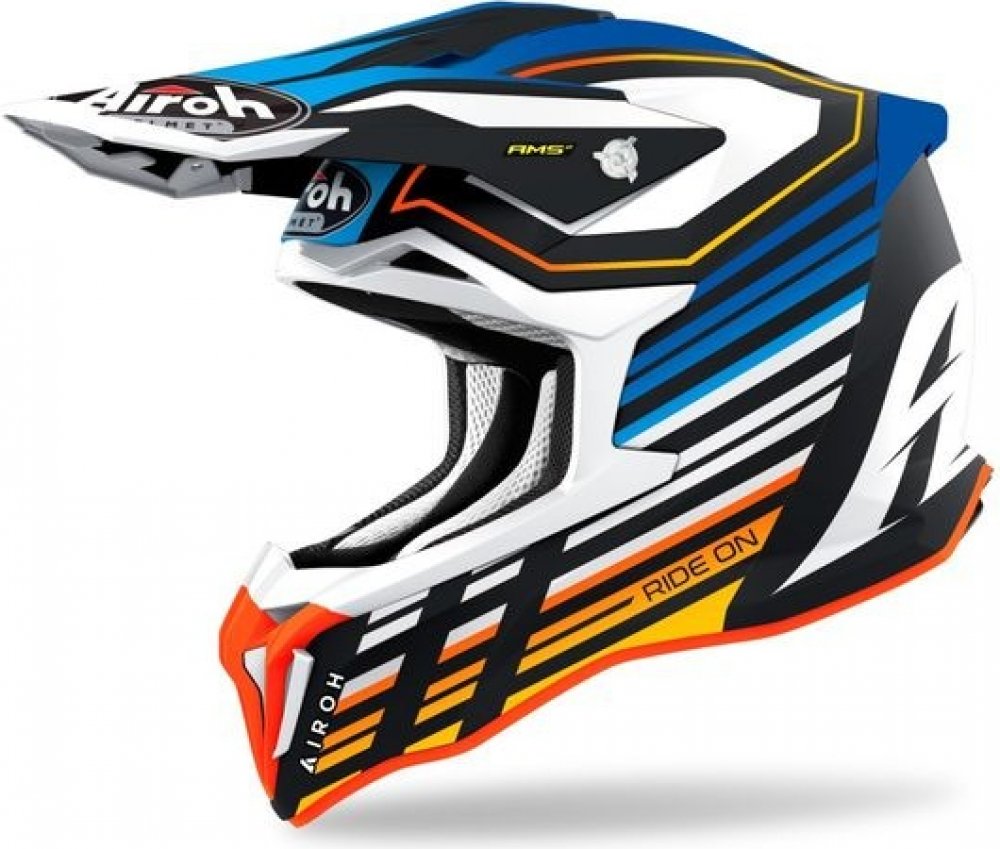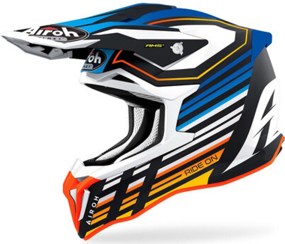Strycker Nová off-roadová helma nebere žádné zajatce. Vnější skořepina z kompozitního HPC (High Performance Composite) dostupná ve třech velikostech zaručuje, že svoji velikost najde každý. Vyjímatelný, hypoalergenní interiér je vybavený bezpečnostním systémem AEFR (Airoh Emergency Fast Release) rychle vyjímatelných lícnic pro bezpečné sejmutí přilby. Přilba Strycker je vybavena revolučním systémem AMS2 (Airoh Multiaction Safety System), který umožňuje zredukovat energii působící na hlavu jezdce při nárazu. Výjimečná přesnost ventilace s pěti náběrovými a dvěma odvětrávacími ventilačními otvory, které perfektně zapadají do aerodynamického tvaru skořepiny. 3 velikosti skořepin nízká váha vysokopevnostní kompozit HPC zapínání na dvojité D kroužky bezpečnostním systémem AEFR systémem AMS2