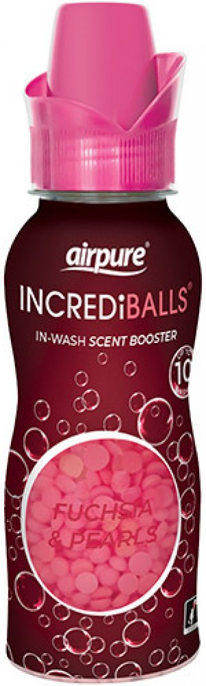 Airpure Incrediballs - vonné perličky pro praní prádla - vůně Fuchsia - 10 pracích dávek Airpure Incrediballs jsou vonné perličky vhodné jako extra přípravek pro parfemaci prádla. Jejich použití je velmi snadné! Vonné perličky Airpure se vloží přímo do bubnu pračky při praní prádla. Při praní používejte prací detergenty (prášek, změkčovadlo, bělidlo apod...) tak jak jste zvyklí. Po vysušení prádla...