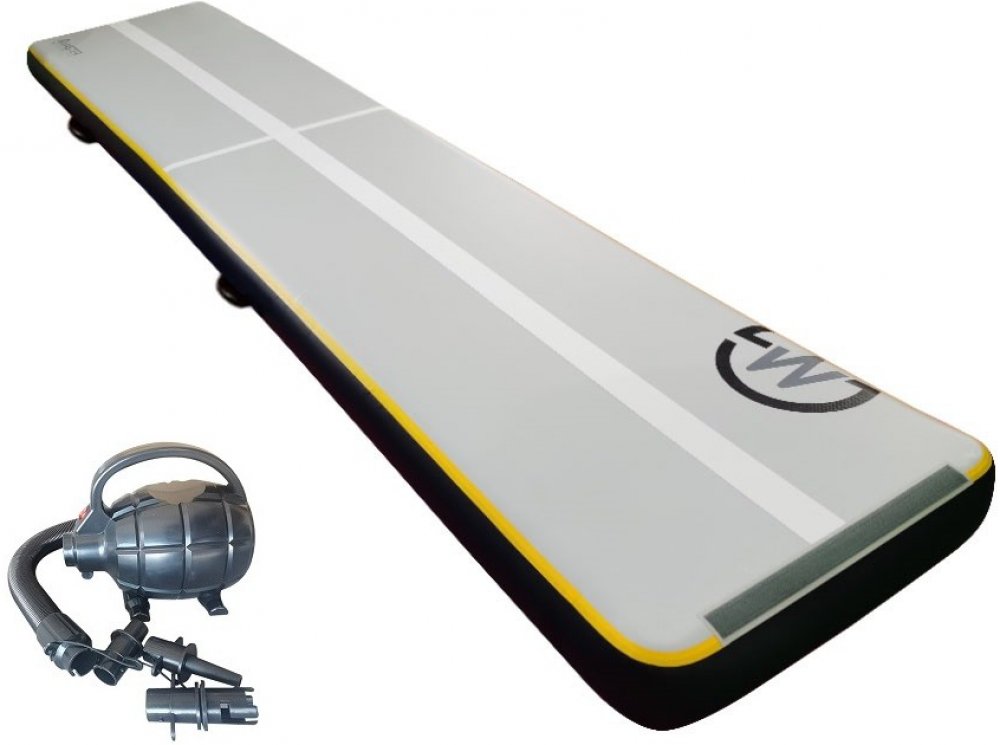 Profesionální airtrack, který je vhodný jak do klubů, tak i pro malé akrobaty na cvičení doma. Je vyroben z vysoce odolného materiálu s CE certifikátem. Materiál je vysoce odolný. Není to materiál používaný na nafukovací hračky, jako u levnějších airtracků. Bez problémů můžete airtrack vzít i do bazénu či moře. Materiál i lepidlo jsou pro tyto činnosti přizpůsobené. Zkoušíte přemety, salta na tram...