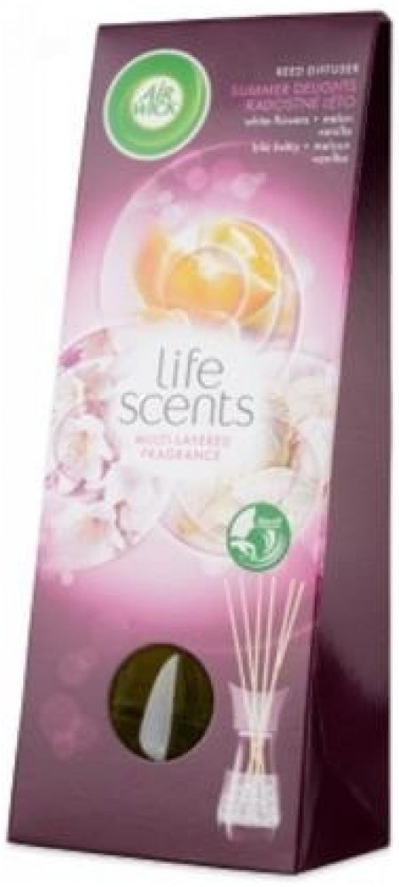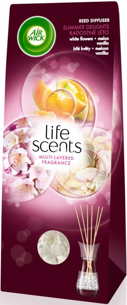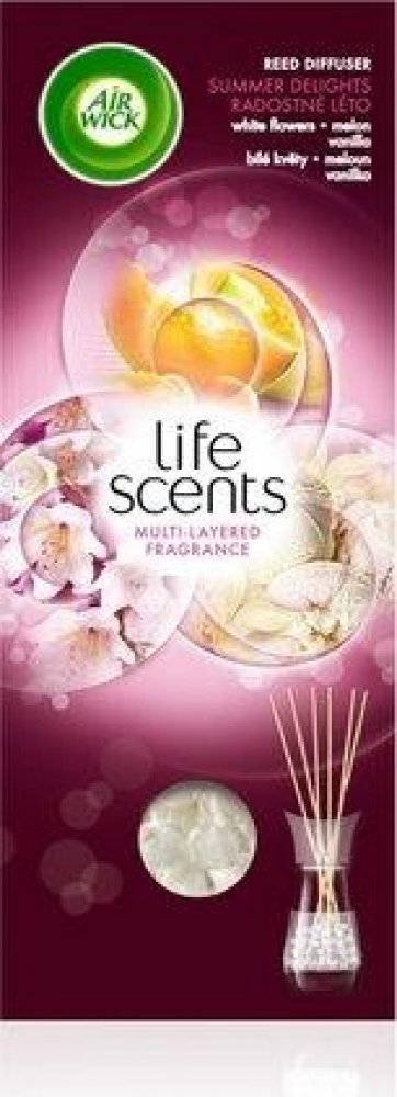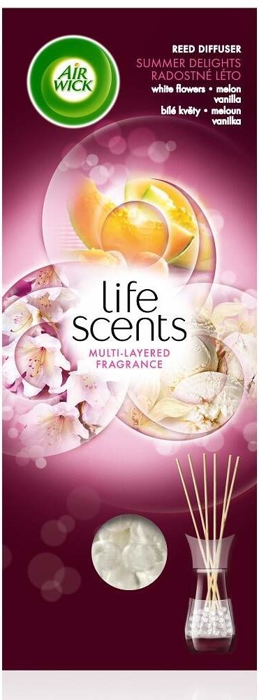Vneste si domů radostné léto s touto hravou a příjemnou vůní, která kombinuje čerstvé bílé květy, sladký meloun a jemné tóny vanilky. Vneste si domů radostné léto s touto hravou a příjemnou vůní, která kombinuje čerstvé bílé květy, sladký meloun a jemné tóny vanilky. Kolekce Air Wick Life Scents je první neustále se měnící vůně, která vytvoří příjemnou atmosféru ve Vaší domácnosti. Air Wick Rákosový difuzér používá přírodní ratanové stonky k jemnému rozptýlení nádherné vůně. Vytvořte přívětivou atmosféru ve vaší domácnosti s touto přírodní vůní a elegantním designem. EUH 208 Obsahuje eugenol, geraniol, acetyl propionyl a linalol. Může vyvolat alergickou reakci.