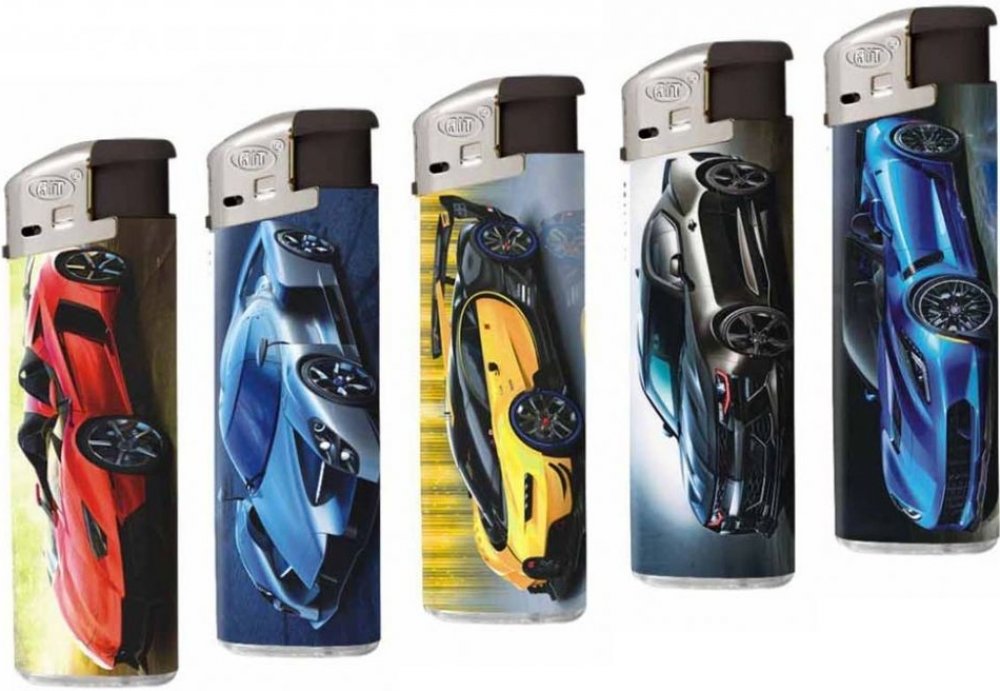 (BAL:50ks) zapalovač s piezo s barevným potiskem AUTA.Cena za 1ks.