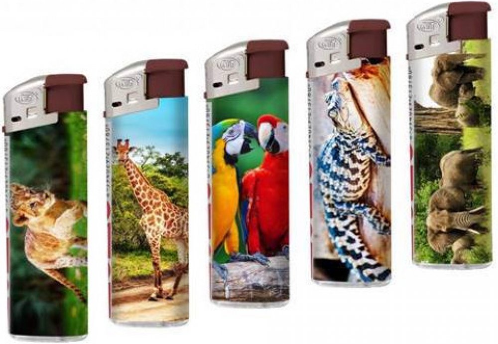 (BAL:50ks) zapalovač s piezo s barevným potiskem AFRIKA ZVÍŘATAcena za 1ks.