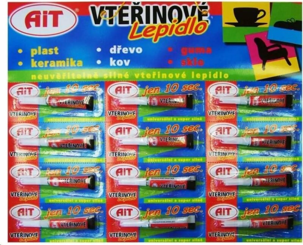 AIT vteřinové lepidlo 2g – plato 12 ks – Rychlé a spolehlivé lepení