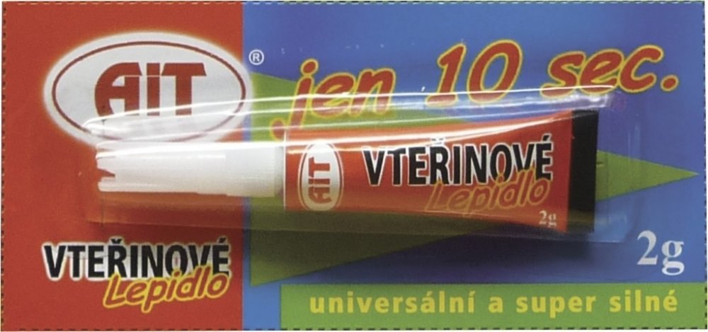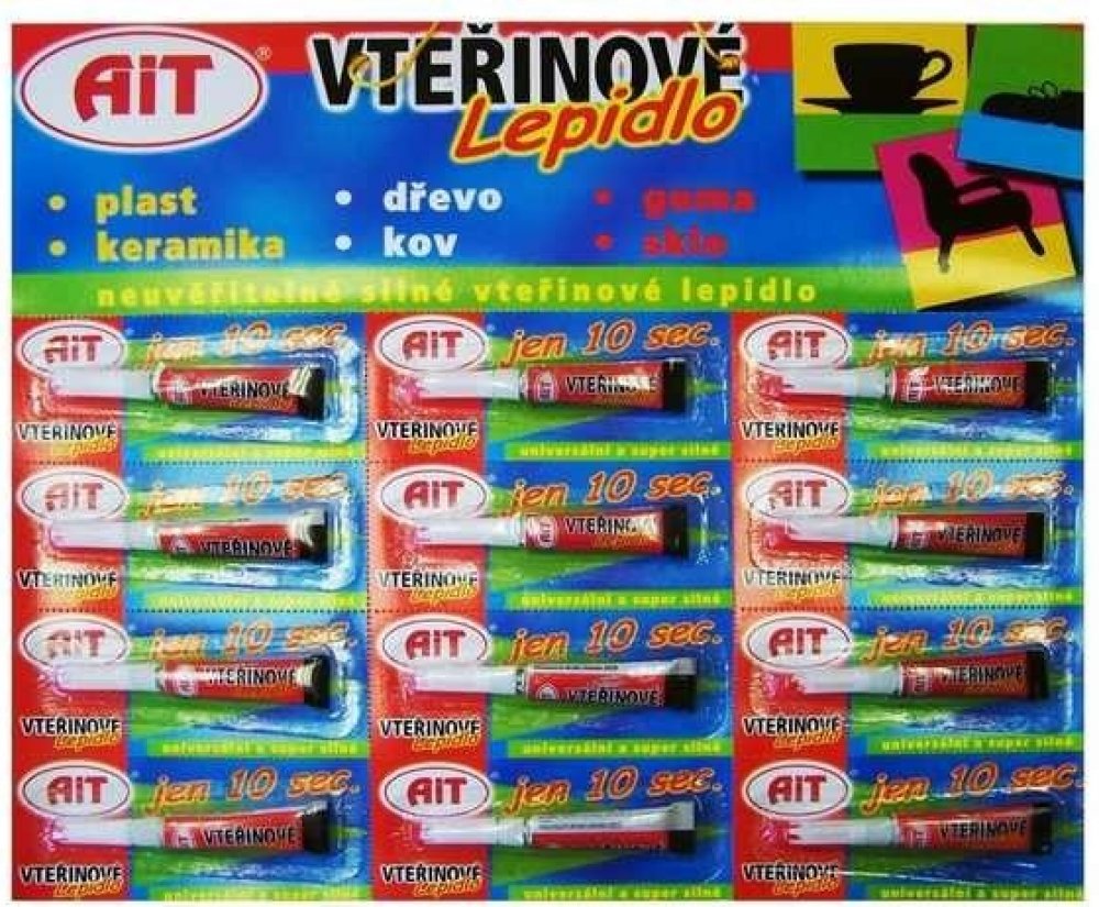 Vteřinové lepidlo, které má 2 gramy. Je vhodné zejména k rychlému lepení. Lze s ním lepit plast, keramiku, bižuterii, gumu i sklo. Lepí rychle a výborně. Lepidlo má velmi silnou lepící schnopnost. Chrantě před dětmi a uchovávejte lepidlo z jejich dosahu. Dejte pozor na kůži rukou. Lepidlo nanesené na pokožku ihned leptá a spojuje. Pozor také na podráždění očí. S lepidlem pracujte velmi opatrně a n...
