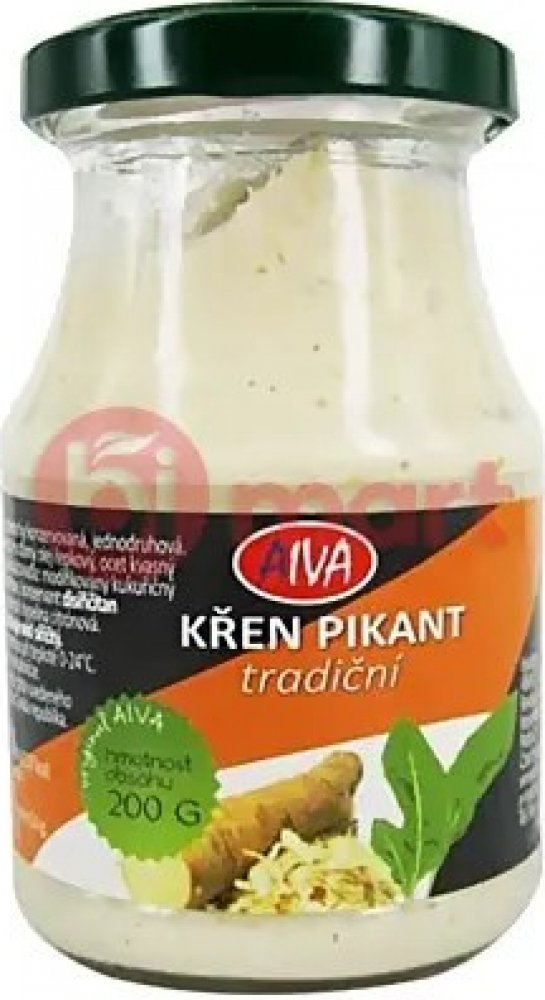 Složení: křen 75%, pitná voda, řepkový olej, ocet, cukr, jedlá sůl, zahušťovadla: modifikovaný kukuřičný škrob, guma guar, konzervant: disiřičitan draselný, regulátor kyselosti: kyselina citrónová