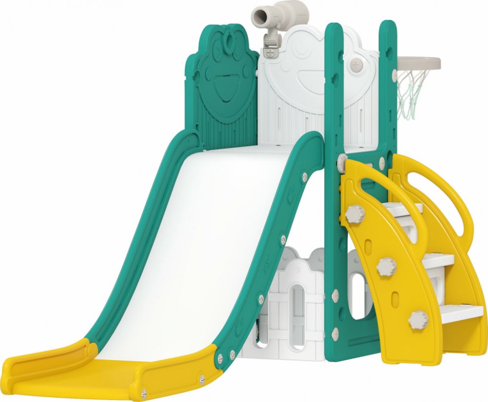 Proměňte svůj domov v kouzelný svět s dětskou skluzavkou AIYAPLAY. Poslouchejte radostný smích svého dítěte, jak se sjíždí po skluzavce a prozkoumává okolí pomocí dalekohledu. Tato zahradní skluzavka, vyrobená z bezpečného HDPE, poskytuje uklidňující úlevu a podporuje kreativitu a přátelství. Vaše ratolesti si bezpečně a kreativně osvojí nové dovednosti a obohatí tak každodenní hru.Popis:✔ Dětská skluzavka 5 v 1 nabízí nekonečné možnosti hraní v interiéru✔ Hladká a bezpečná skluzavka se speciálně navrženými zónami pro plynulou jízdu✔ Vyrobeno z HDPE, bezpečné pro zdraví batolat✔ Protiskluzové schůdky na dětské skluzavce pro bezpečné lezení✔ Součástí je herní dalekohled a basketbalový koš, které podporují kreativitu a učení✔ Dodává se s basketbalovým míčem a pumpou, připraveno ke hře✔ Modulární design, snadná montáž za cca 20 minutTechnické specifikace:✔ Barva: Žlutá + Zelená✔ Materiál: Plast✔ Celkové rozměry: 178D x 70Š x 86V cm✔ Vnitřní rozměry skluzavky: 133D x 32Š cm✔ Velikost plošiny: 36D x 28Š cm✔ Velikost úložného boxu: 36D x 33Š x 27V cm✔ Doporučený věk: 1-3 roky✔ Schválený věk: 1+ let✔ Maximální zatížení: 30 kgSoučástí balení:✔ 1 x Sada skluzavek✔ 1 x Basketbalový koš✔ 1 x basketbalový míč✔ 1 x pumpa✔ 1 x dalekohled✔ 1 x manuálZábava 5 v 1: Tato všestranná hrací sada s motivem žáby obsahuje skluzavku, basketbalový koš, dalekohled, lezeckou stěnu a úložný box pro batolata. Udrží vaše dítě aktivní a zábavné po celý den.Hladká a bezpečná skluzavka pokaždé: Speciálně navržená se zrychlovacími, zpomalovacími a ochrannými zónami pro zajištění hladkého skluzu. Protiskluzové kreslené schůdky a uzavřená madla poskytují zvýšenou bezpečnost a jistotu malým lezcům.Bezpečné pro děti, schváleno rodiči: Vyrobeno z polyethylenu s vysokou hustotou (HDPE) s hladkými, zaoblenými hranami, tato dětská skluzavka nemá ostré rohy, což poskytuje klid.Podporuje aktivní dobrodružství: Ať už pozorují hvězdy skrz hračkový dalekohled nebo hrají basketbal, děti mohou prozkoumávat své okolí a kreativně se vyjadřovat prostřednictvím různých herních aktivit.Rozměry zahradní skluzavky: Celkové rozměry: 178 D x 70 Š x 86 V cm. Modulární design usnadňuje sestavení a je připraven ke hře za pouhých 20 minut.