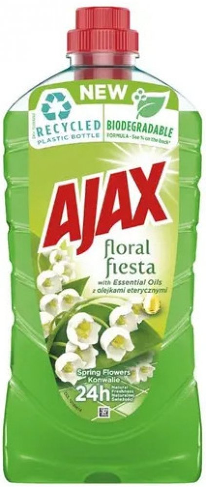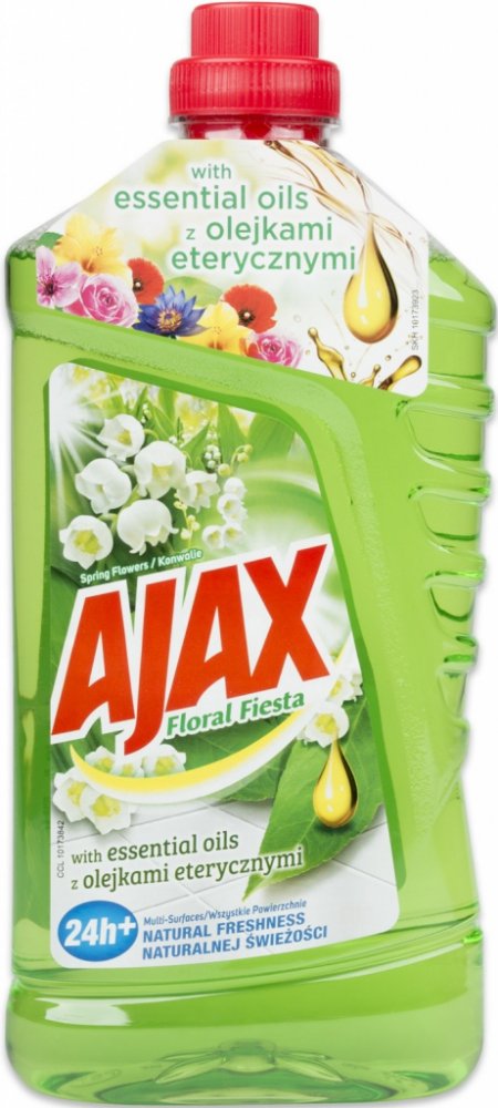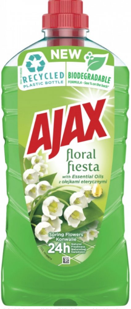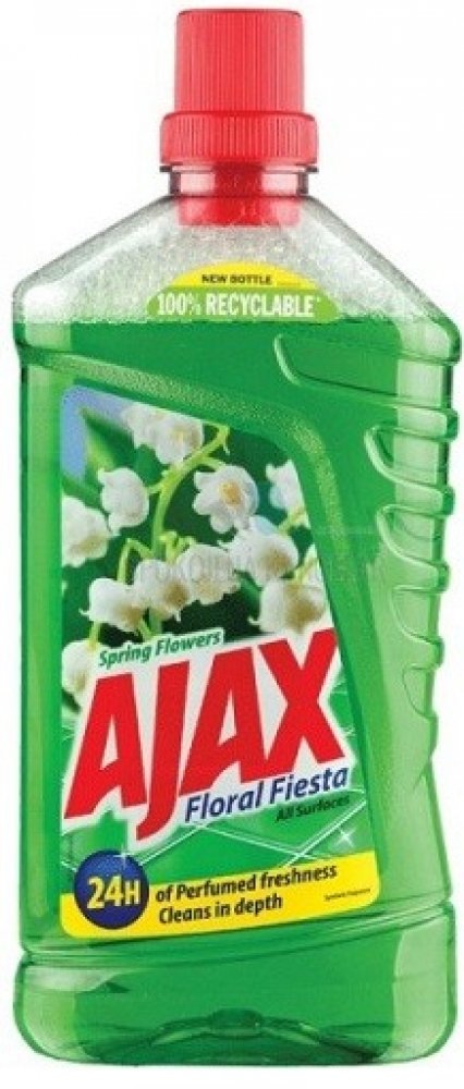 Ajax zanechá příjemnou vůni ve Vaší domácnosti až po dobu několika hodin. Dokonalá čistota, zářivý lesk a příjemná svěží vůně květin vydrží dokonce i druhý den po úklidu. Ajax poskytuje povrchům zářivou čistotu a hloubkové čištění, které zanechává plochy uklizené i bez následného oplachování. Složení přípravku je pH neutrální a z toho důvodu je šetrný k choulostivým povrchům (mramor, keramika). Přípravek lze použít na podlahy v celé domácnosti, na plochy v kuchyni, koupelně apod.