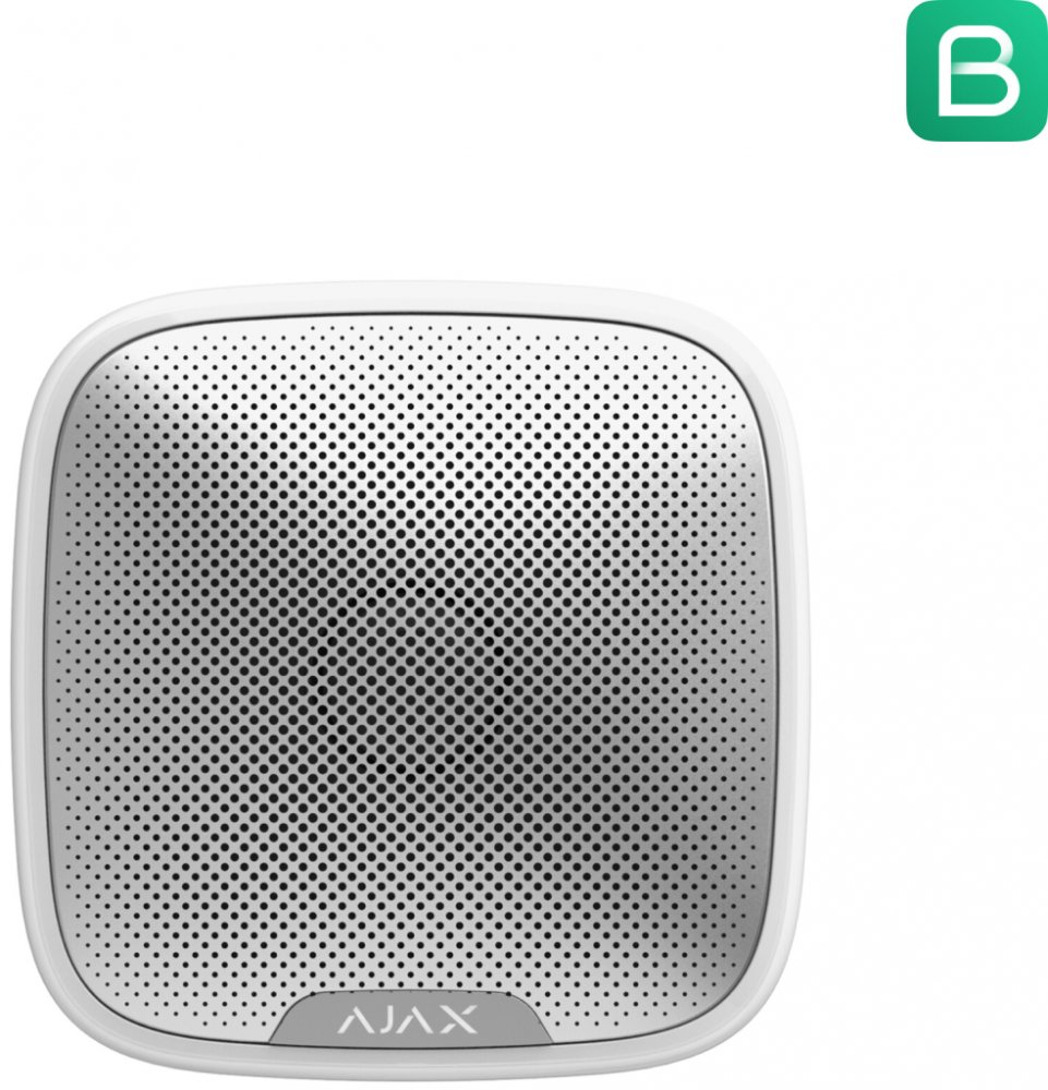Ajax StreetSiren je bezdrátová siréna určená pro použití ve venkovních prostorech. Intenzitu akustické signalizace lze libovolně nastavit v rozmezí 85 až 113 dB. Díky unikátnímu protokolu Jeweller může komunikovat s Ajax Hubem až na vzdálenost 1 500 m v otevřeném prostoru.