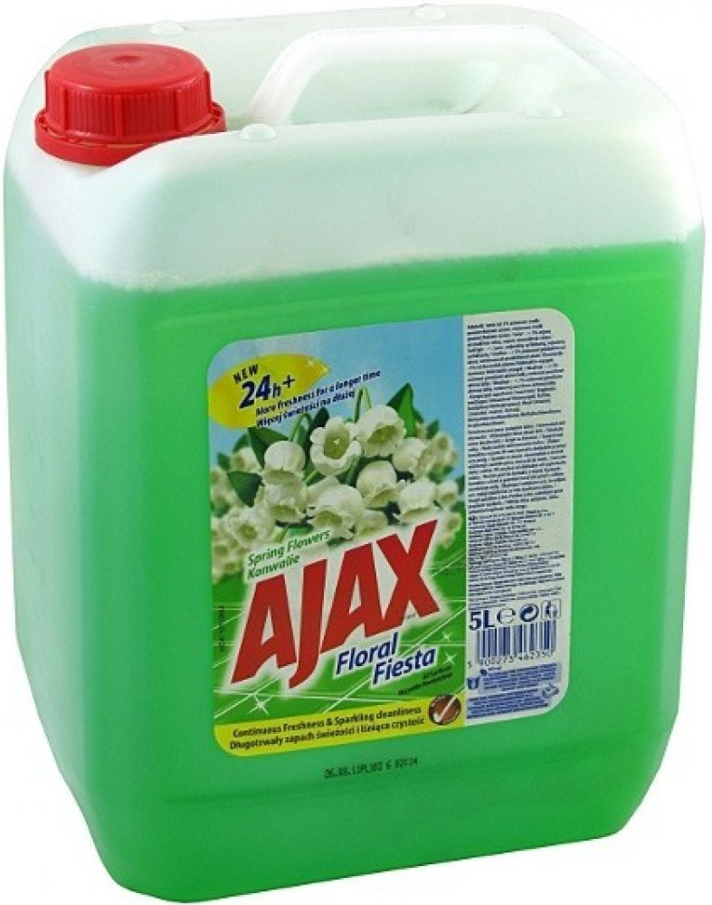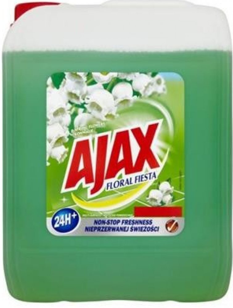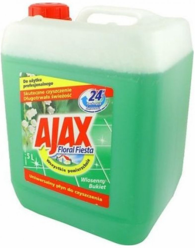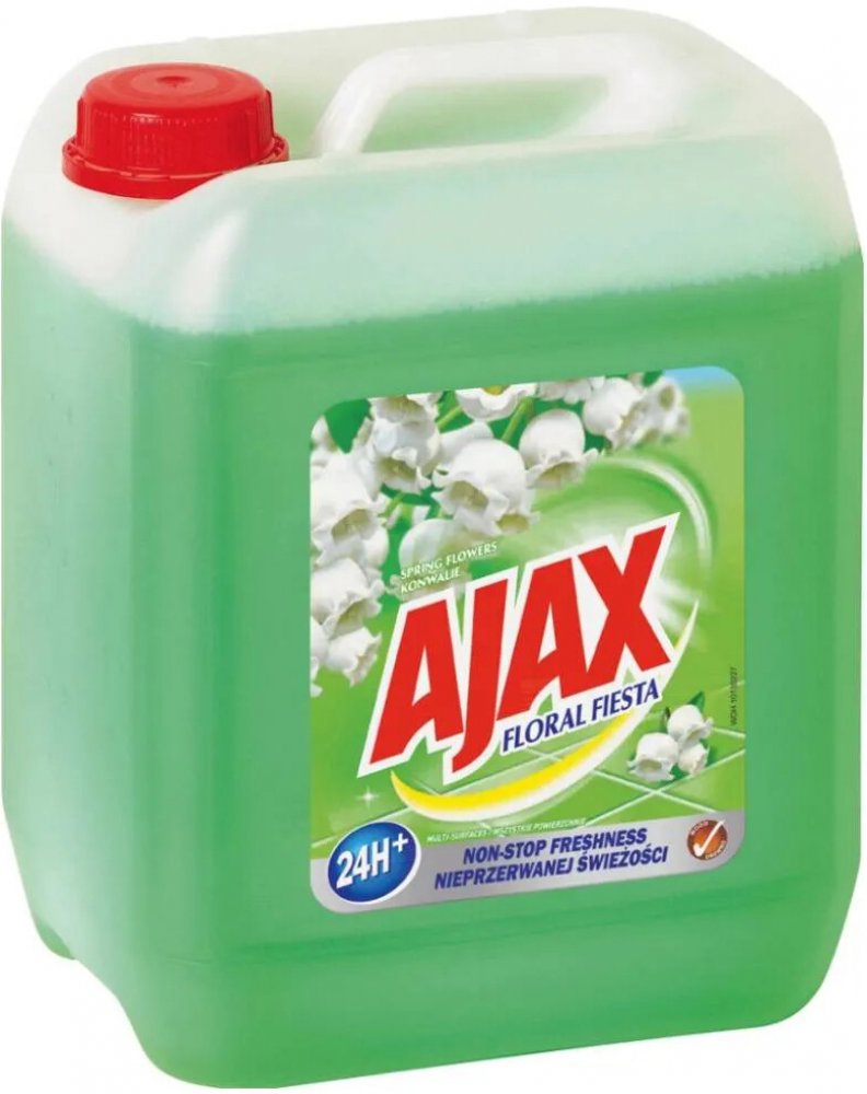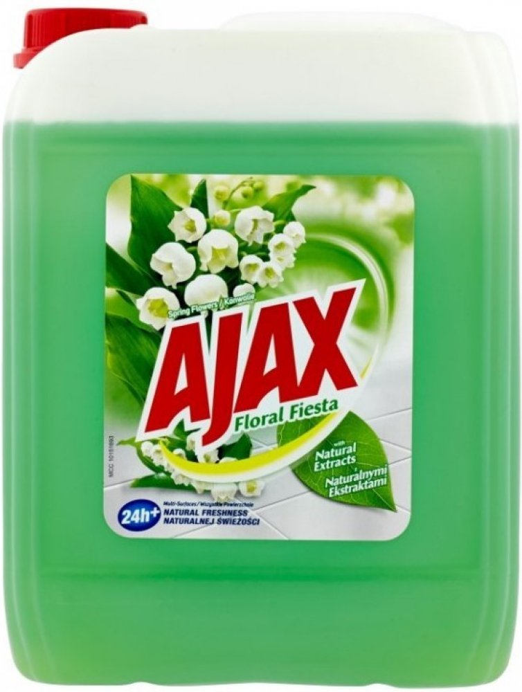 Ajax 5 l Spring Flowers - svěží vůně konvalinek a čistoty dokonce i následující den! Ajax Spring Flowers s jeho unikátní svěžestí, aktivující se vzduchem, uvolňuje svojí květinovou vůni nepřetržitě po dobu více než 24 hodin - jako květina. Čistí do hloubky a zanechává povrchy zářivě čisté. Konvalinky provoní váš domov okouzlující vůní. Bez oplachování. Neutrální pH - respektuje citlivé povrchy (mramor, keramika...). Povrchy, které přicházejí do kontaktu s jídlem, opláchněte pitnou vodou.POUŽITÍ:Pro úklid velkých ploch zřeďte 72 ml na 6 l vody. Na odolné skvrny použijte nezředěný přípravek.SLOŽENÍ:Viz Ingredients na obalu produktu.UPOZORNĚNÍ:VAROVÁNÍ. Způsobuje vážné podráždění očí. Uchovávejte mimo dosah dětí. Při zasažení očí několik minut opatrně vyplachujte vodou. Přetrvává-li podráždění očí, vyhledejte lékařskou pomoc. Může vyvolat alergickou reakci.ŽIVOTNÍ PROSTŘEDÍ:Zcela prázdný a důkladně čistý plastový obal je možné recyklovat. Chraňte životní prostředí recyklací. Má to smysl. Správným dávkováním šetříte životní prostředí i peněženku.