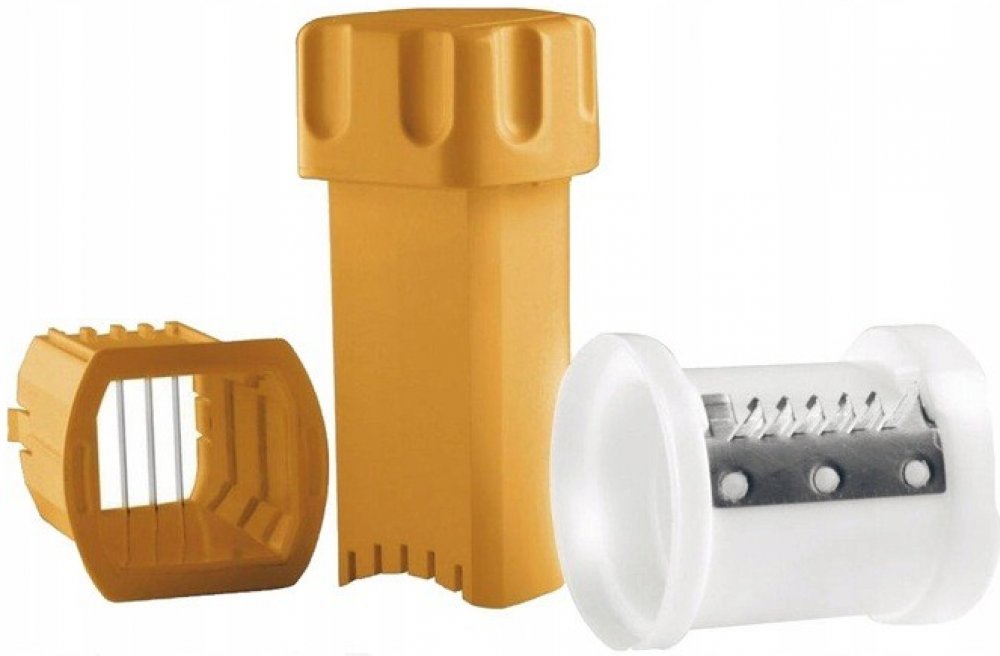 Originální kráječ Zelmer. Pro jeho použití musíte mít mlýnek kompatibilní s novým typem kráječe Zelmer s vodítky. Nepasuje na palubní skartovačky bez vodítek v tlačné komoře.