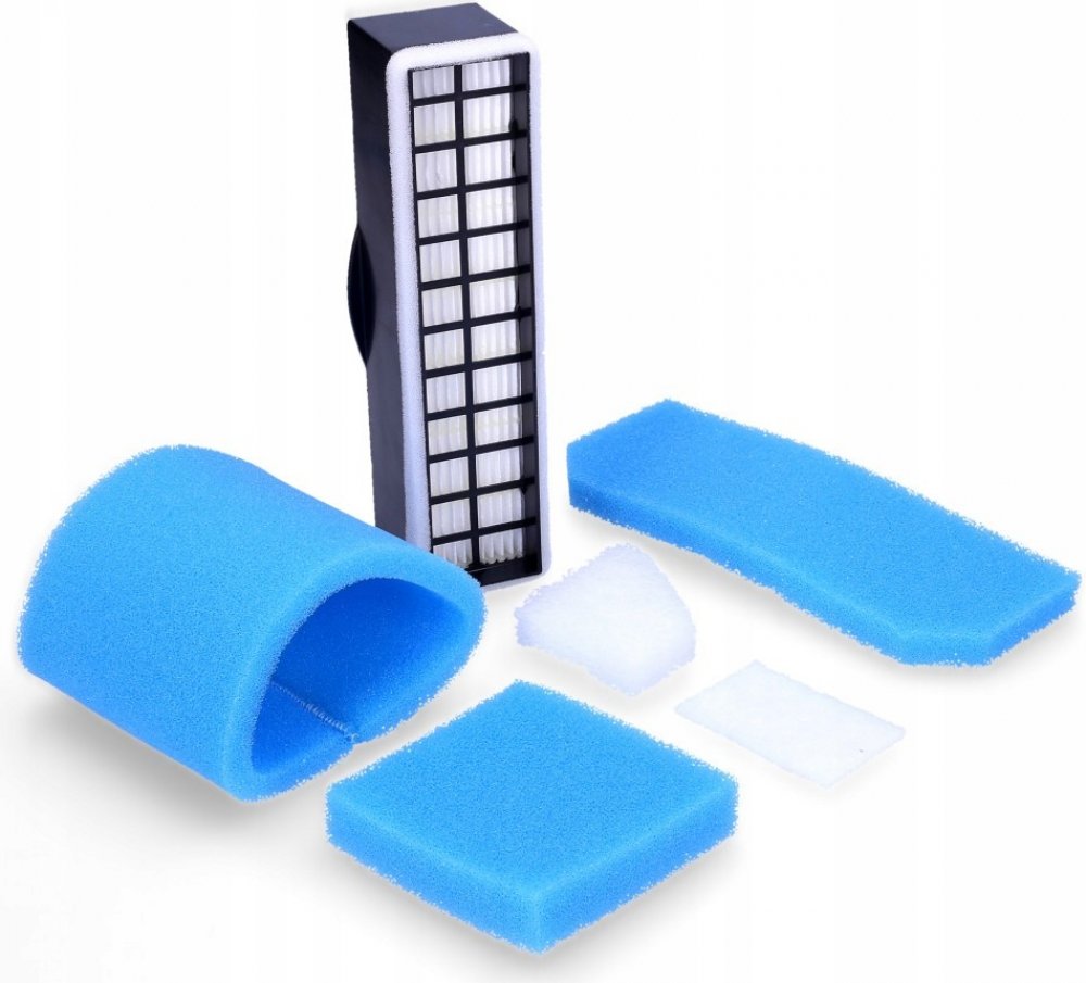 Sada se skládá z těchto filtrů:1x velký HEPA filtr (skládaný filtr v pevném plastovém rámu s obvodovým vnějším těsněním) - tento filtr použijete u vysavačů Zelmer Aquos 829, Zelmer Delfin 719, 819, 8291x velký plochý pěnový filtr - 192 * 73 * 15 mm1x čtvercový plochý pěnový filtr - 87 * 83 * 20 mm1x válcový pěnový filtr - výška 100 mm, síla 10 mm2x malý bílý úzký mikrofiltr - 60 * 40 * 8 mm2x široký mikrofiltr - 52 * max 60 * 20 mm (zastřižený ze šikma)