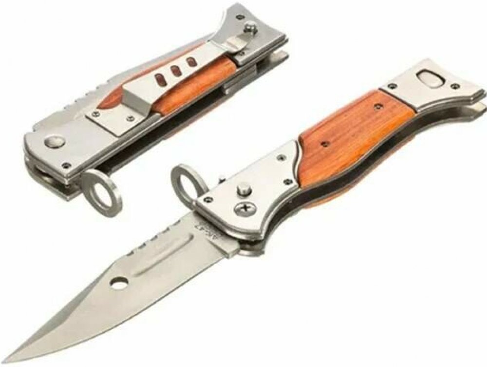 Reprodukce nože AK47 CCCP používaného ruskou armádou. Čepel je tvořena z nerezavějící oceli, která je zároveň opatřena praktickou pojistkou proti samovolnému otevření. Na konci nože je možnost nasazení nože na zbraň. Tento taktický nůž je dodáván v ochranném pouzdru pro pohodlnější přenášení a uskladňování.