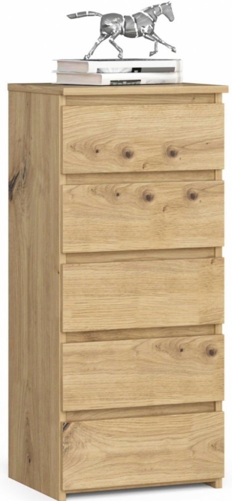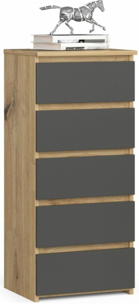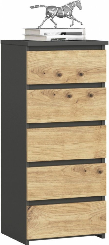 Máte pocit, že úložného prostoru není nikdy dost? S komodou CL5 a jejími pěti zásuvkami nabízíme řešení, které překoná vaše očekávání. Moderní a praktický design spojený s funkčností kolejnic pro plynulé otevírání a zavírání zásuvek přináší do vašeho interiéru nový standard pro organizaci. Představte si, kolik věcí můžete uklidit do těchto zásuvek – od pracovních dokumentů a oblečení až po oblíbené knihy a dětské hračky. Ať už potřebujete úložiště v kanceláři, ložnici, dětském pokoji, pracovně či předsíni, komoda se stane vaším věrným partnerem. Její nadčasová barva a laminovaná dřevotříska nejenže zajišťují dlouhodobou odolnost, ale i estetickou eleganci. Komoda je nejen funkčním prvkem, ale i designovým kouskem, který svým stylem zjemní každý interiér. Přestaňte se trápit nedostatkem místa a vsaďte na komodu, která splní všechna vaše očekávání. Série CL toho však nabízí mnohem více, včetně dalšího nábytku v tomto dekoru, prozkoumejte ji zde. Specifikace produktu: Odolnost - nábytek je vyroben z kvalitní laminované dřevotřísky odolné proti oděru Kapacita - 5 zásuvek pro libovolné uspořádání Elegantní vzhled Snadná montáž Rozměry: Komoda Šířka: 40 cm Výška: 92 cm Hloubka: 35 cm Zásuvka Šířka čela: 39,6 cm Výška čela: 15 cm Vnitřní šířka: 31 cm Vnitřní výška: 7 cm Vnitřní hloubka: 31,5 cm