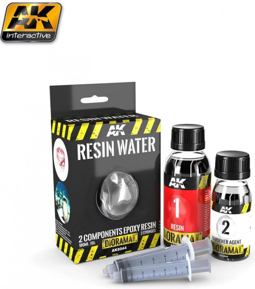 Resin Water od výrobce AK Interactive je dvousložková epoxidová pryskyřice s nízkým zápachem, která napodobuje křišťálově čistou vodu na vaších podstavcích nebo diorámatech. Smíchejte pryskyřici a tužidlo v poměru 2:1 a nechte 24 hodin zaschnout (doba schnutí závisí na aplikovaném množství a okolní teplotě). AK Interactive: Resin Water se nesráží a nezanechává bubliny. Součástí balení jsou 2 injek...