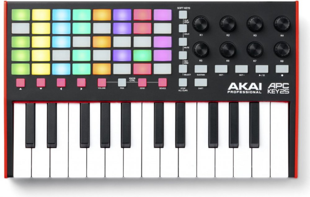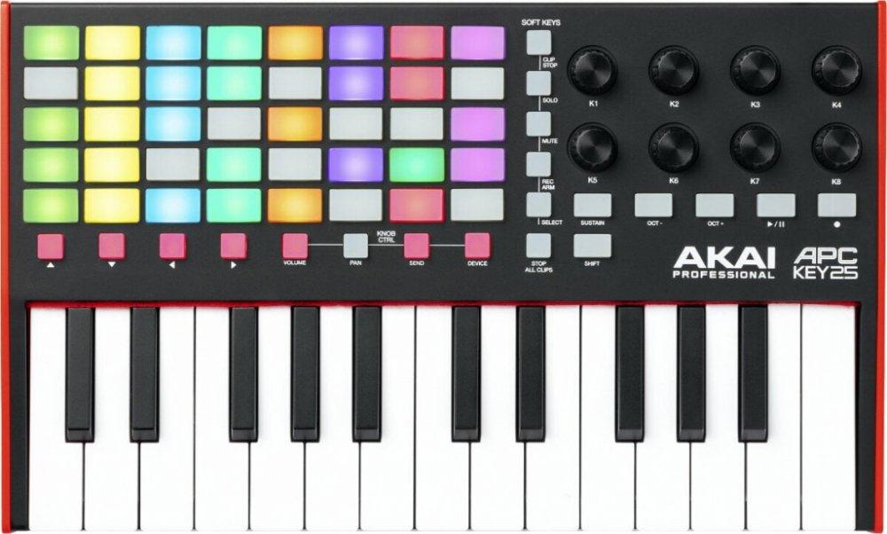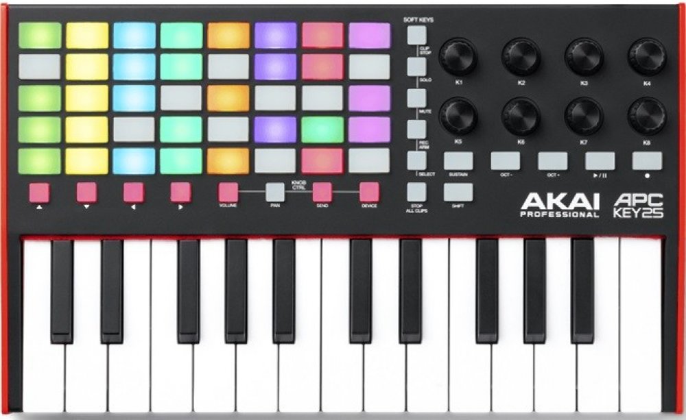 Firma AKAI se v oboru zvukové techniky pohybuje již velmi dlouho a rozhodně se svými produkty řadí do nejužší světové špičky. APC Key 25 MKII se právem stane prodlouženou rukou pro DJ, producenty, ale i obyčejné fanoušky audio žánru. Promyšlená konstrukce využívá každý milimetr pro žádané funkce. Soustava 5 x 8 podsvícených padů vám dopřeje naprostý přehled v každé situaci. Ve spodní části se nachází 25 mini kláves (druhé generace) pro konvenční skládání melodií. Po pravé straně se nachází 8 přiřaditelných ovládacích knoflíků (s možností 360°). Jejich účel si můžete přizpůsobit svému stylu.