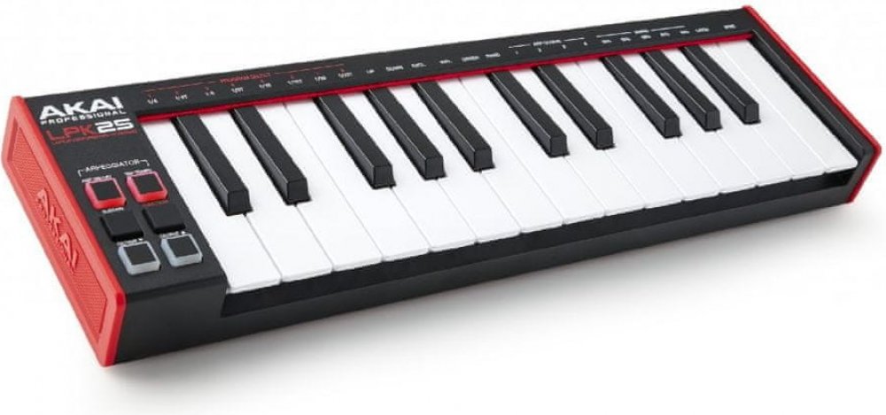 USB/MIDI keyboard AKAI LPK 25 MKII je kompaktní a přenosný MIDI kontroler s 25 mini-klávesami, který je ideální pro mobilní hudebníky a producenty. S jeho kompaktním a lehkým designem se snadno vejde do vaší tašky a umožňuje vám vytvářet hudbu kdekoliv a kdykoliv. LPK 25 MKII nabízí širokou škálu funkcí včetně ovládání oktávy, modulace, pitch bendu a přiřaditelných tlačítek. S integrovaným arpeggiatorem můžete snadno vytvářet složité a zábavné hudební vzory. Tento MIDI kontroler je kompatibilní s různými DAW softwarem a je napájen přímo z vašeho počítače nebo USB adaptéru. S AKAI LPK 25 MKII máte nástroj, který vám umožní snadno ovládat vaši hudbu kdekoliv a s minimálním námahou.