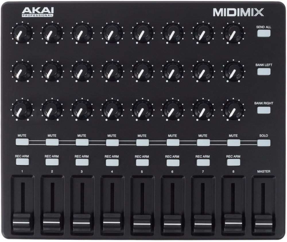 Jak už bývá zbykem, značka AKAI zaručuje jistou kvalitu v kombnaci s intuitivním rozložením všech ovládacích prvků. S přechodem z jiného kontroleru na MIDImix nebudete mít jistojistě žádný problém! Kombinace 8 line faderů, master faderu, 24 knobů (vždy tři pro jeden kanál). Uživatel může veškerá nastvení kontroleru odeslat do jeho DAW stiskem jedinéh tlačítka, to znamená, že veškeré modifkace a úpravy mohou probíhat real-time a nabízí tak mnoho kreativních možností.