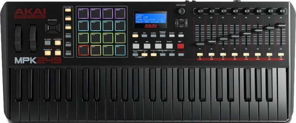 USB/MIDI keyboard Akai MPK49 vstupuje do nové éry USB/MIDI ovladačů tím, že kombinuje vysoce kvalitní 49 klávesovou polovyváženou klaviaturu s Aftertouch a 16 bicími pady z MPC série. Celkem 48 padů je přístupných přes 4 banky. Funkce padů jsou srdcem a duší hip hopu: funkce MPC Note Repeat a Swing parametry. Akai MPK49 Performance Controller má také svůj vlastní arpeggiator, pro rychlou tvorbu, kreativních riffů. Na svých padech nabízí funkce MPC Full Level, 12 Level a MPC Swing, které mohou být použity jak pro Note Repeat tak Arpeggio funkce. Tlačítka Tap Tempo a Time-division umožňují ovládání rychlosti hodin Note Repeat a Arpeggio v reálném čase. Akai MPK49 přináší 76 přiřaditelných ovladačů, s přiřaditelné vstupy, jejichž součástí je i Expression kontinuální pedál, nožní přepínač, kolečka pitch bend a modulace. Více než jen USB/MIDI ovladač, MPK49 zachycuje duši vašeho vystoupení.