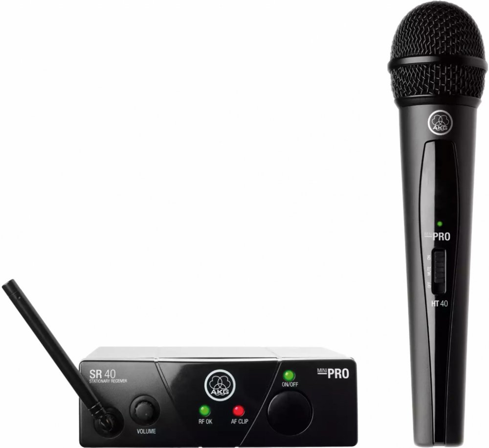 AKG WMS 40 MINI Vocal Použití: - Zpěv - Přednášky Technické údaje vysílače HT 40 Mini - Provedení: mikrofon - Frekvenční rozsah: 40 Hz - 20 kHz - THD (1kHz): 0,8% - RF výkon: 10mW - Odstup signálu od šumu: 110dB (A) - Napájení: 1x AA baterie - Životnost baterie: 30 hodin - LED indikace stavu baterie - Vypínač - Hmotnost: 195 g - Rozměry: 230 x 52,5 mm