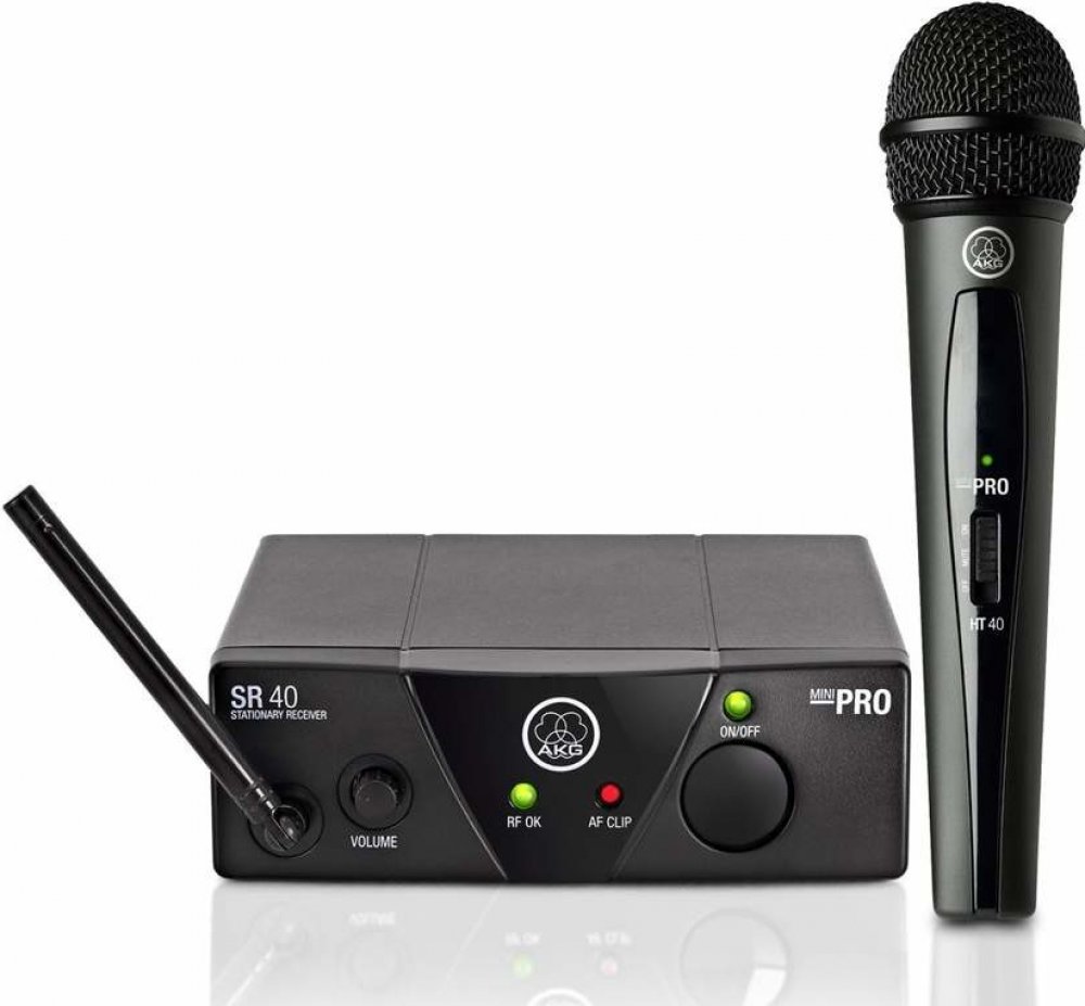 Ruční bezdrátový systém ze série WMS40, který je skutečným „plug'n'play“ bezdrátovým řešením a poskytuje křišťálově čistý zvuk. Je připraven k použití během jedné vteřiny. UHF frekvence 863,1 MHz, poskytuje optimální řešení pro malá pódia, kluby, menší bohoslužby. Systém se skládá z přijímače SR40 Mini a ručního vysílače HT40 Mini s dynamickou vložkou. Přijímač je vybaven třemi stavovými LED indikujícími stav zapnutí/vypnutí, intenzitu přijatého signálu (RF OK) a zvukové oříznutí (AF CLIP). Poskytuje ovladač hlasitosti a bezhlučný vypínač pro ochranu připojených reproduktorů, stejně jako jeden symetrický výstup přes konektor jack6,3mm. Obalení obsahuje napájecí spínaný zdroj, který pracuje na libovolném střídavém napětí od 110 do 240VAC a je vybaven adaptéry pro použití v EU, Velké Británii a Spojených státech. Ruční vysílač nabízí kardioidní směrovou charakteristiku, která zajišťuje maximální ochranu před zpětnou vazbou, a jedinečnou technologii HDAP (High Definition Audio Performance), která přináší brilantní zvuk. Má také vypínač on/off/mute a pevnou kovovou mřížku pro ochranu mikrofonu. Skvělou funkcí vysílače je mimořádně dlouhá životnost baterie, zaručující až 30 hodin provozu při použití jedné AA baterie.