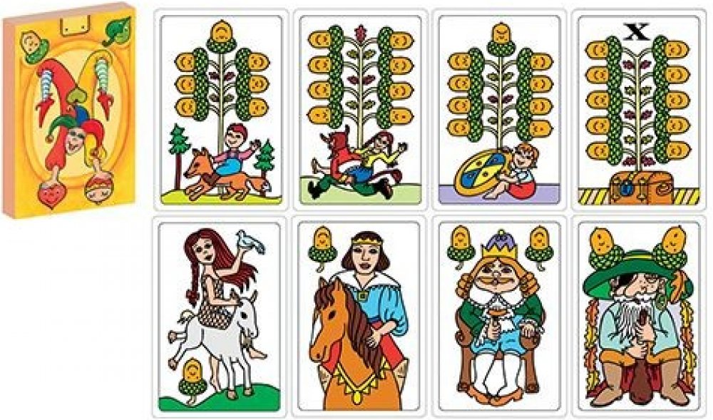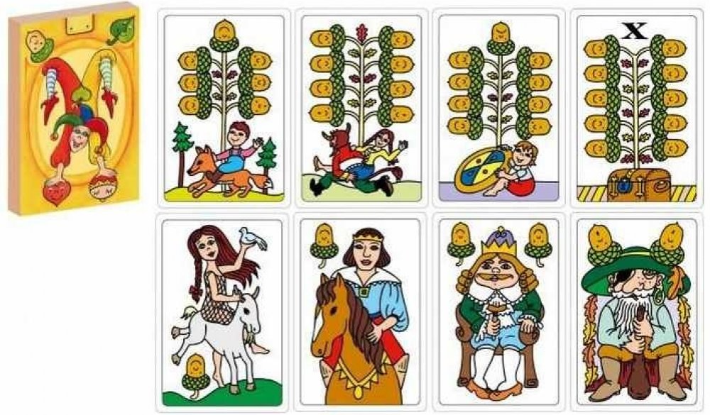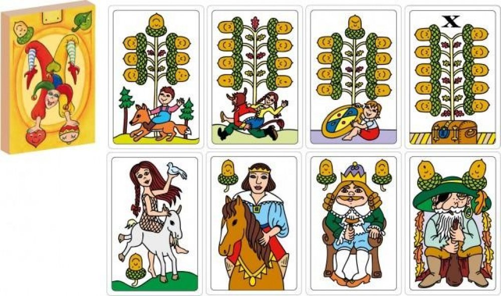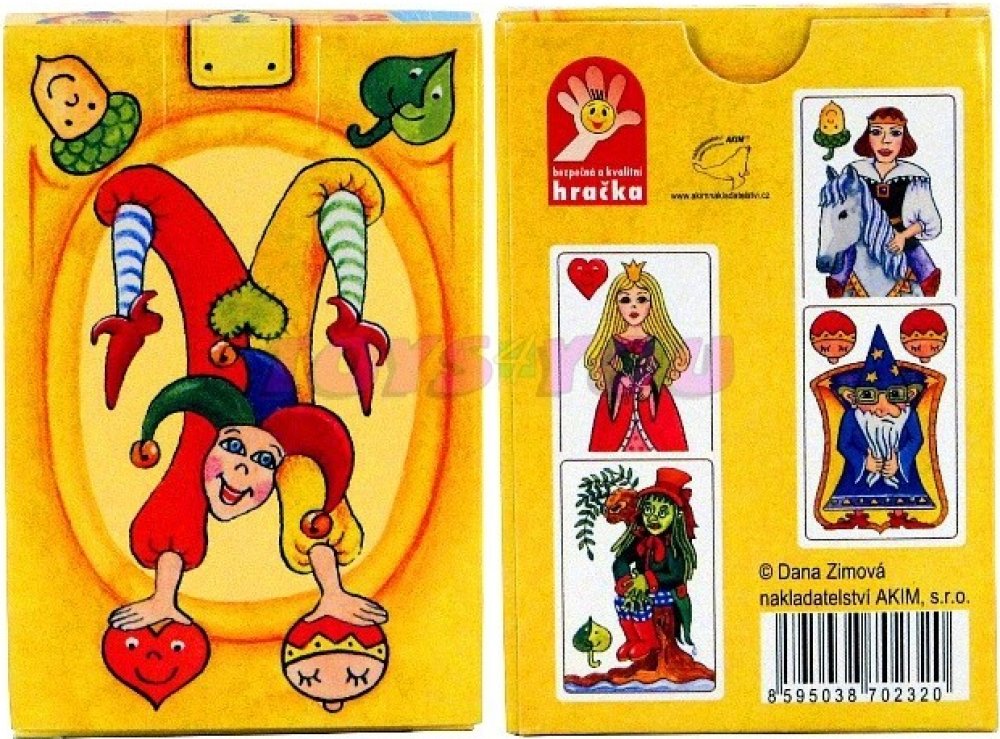 Publikace: Pohádky - dětské hrací karty - neuveden. Dětské karty pro hru zvanou "Prší". Krabička obsahuje i podrobný návod a karty mají na rubové straně mírně zdrsnělý povrch pro lepší manipulaci s nimi. Publikace: Pohádky - dětské hrací karty - neuveden.