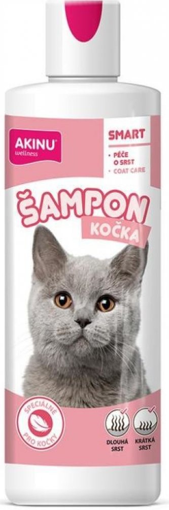 Akinu šampon pro kočky urychluje regeneraci ochranného filmu po umytí, chrání před plstnatěním a zvyšuje lesk srsti. Je vhodný také pro suchou kůži a srst. Neobsahuje silikony, parabeny a sulfáty.