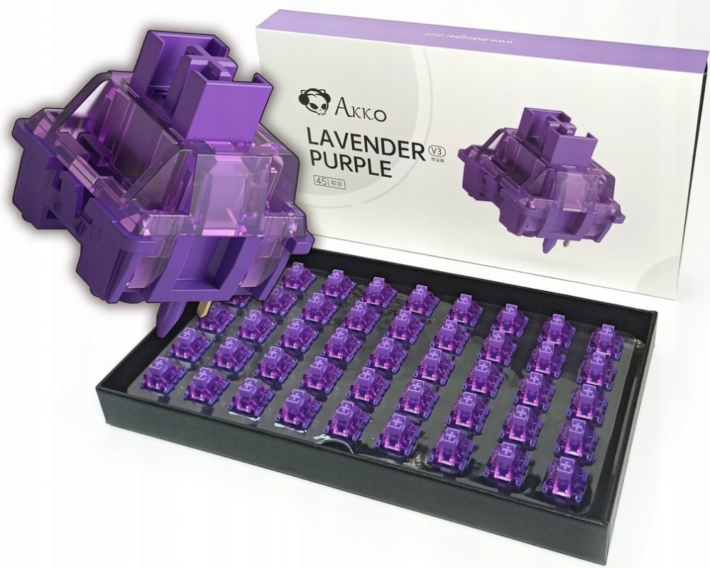 Akko V3 Lavender Purple Pro SwitchTyp: hmatovýOvládací síla: 40gf ± 5gfCelkový zdvih: 3,8 mmPohyb vpřed: 1,9 ± 0,5 mmHmatová poloha: 0,5 mmKontaktní síla: 55g ± 5g⌨【40gf V3 Lavender Purple Pro Tactile Switch】Akko Lavender Purple Pro vylepšilo běžný Lavender Purple na 5pólový s prachotěsnou konstrukcí, s přídavnými mazivy na kolejnicích, které poskytují lepší zážitek po vybalení z krabice.⌨【Vysoká kvalita a odolnost】: Společnost Akko zvolila vysoce kvalitní materiály - horní kryt z polykarbonátu, spodní kryt z nylonu PA66, hřídel z POM, pružina z poniklované nerezové oceli a listová pružina ze slitiny mědi s pozlacenými kontakty. Životnost přibližně 60 milionů stisknutí kláves na základě testů odolnosti v laboratoři.⌨【Integrovaná štěrbina LED】: Konstrukce horní světelné pozice. Spínače Akko mají sloty LED pro přizpůsobení/montáž LED kuliček a SMD kuliček. Kompatibilní s klávesnicemi orientovanými na sever a na jih.⌨【Vysoká kompatibilita】: Klávesové spínače Akko jsou 5pólové spínače, kompatibilní s většinou patic PCB klávesnic. Spínače jsou přizpůsobeny oblíbené struktuře Cherry MX, takže se hodí k většině sad kláves Cross Stiel. (+)⌨【Zabaleno jednotlivě pro větší stabilitu】: Jedno balení obsahuje 45 spínačů s plastovou vaničkou, ve které jsou spínače bezpečně uloženy a kterou lze v případě potřeby použít jako mazací stanici. Přepínač AKKO V3 Pro Lavender PurpleAKKO V3 Pro Lavender Purple Switch je vysoce kvalitní mechanická klávesnice s hmatovými spínači, které poskytují pohodlné psaní a přesný vstup. Balení obsahuje 45 kusů a nabízí tak dostatek náhradních spínačů, které můžete vyměnit nebo přizpůsobit své klávesnici. Zde je pět technických zajímavostí, kterými tyto spínače vynikají:Lavender Purple Switch: Klávesnice AKKO V3 Pro používá spínače Lavender Purple Switch, které jsou známé svými hmatovými vlastnostmi. Tento spínač klade při stisknutí znatelný odpor a vydává mírný zvuk cvaknutí, který poskytuje hmatovou zpětnou vazbu. To umožňuje přesné zadávání a příjemný zážitek při psaní.pětikolíkové provedení: Spínače jsou vybaveny pětikolíkovým provedením, které umožňuje snadnou instalaci a výměnu. Tato konstrukce zajišťuje lepší stabilitu a odolnost a zabraňuje náhodnému vyjmutí nebo vyklouznutí spínačů.Kompatibilita se stopkami MX: Spínače AKKO V3 Pro Lavender Purple jsou kompatibilní se stopkami MX, což znamená, že je lze použít s většinou běžných kláves na trhu. Díky tomu si můžete klávesnici přizpůsobit různými klávesami podle svého osobního stylu a preferencí.aktivační síla 40 g: Spínače mají aktivační sílu 40 g, což znamená, že se snadno mačkají a poskytují rychlé a citlivé psaní. To je ideální pro rychlé psaní a herní aplikace, kde je vyžadována rychlá odezva.Odolnost: Spínače AKKO V3 Pro Lavender Purple jsou vyrobeny tak, aby vydržely. Jsou vyrobeny z vysoce kvalitních materiálů a nabízejí vysokou odolnost, která zajišťuje dlouhodobé používání. Díky tomu jsou spolehlivou volbou pro časté písaře, hráče a všechny, kteří hledají klávesnici s dlouhou životností.Spínače AKKO V3 Pro Lavender Purple nabízejí kombinaci hmatových vlastností, snadné instalace, kompatibility se stonky MX, lehké ovládací síly a dlouhé životnosti. Díky těmto technickým přednostem je vynikající volbou pro každého, kdo hledá kvalitní mechanickou klávesnici.