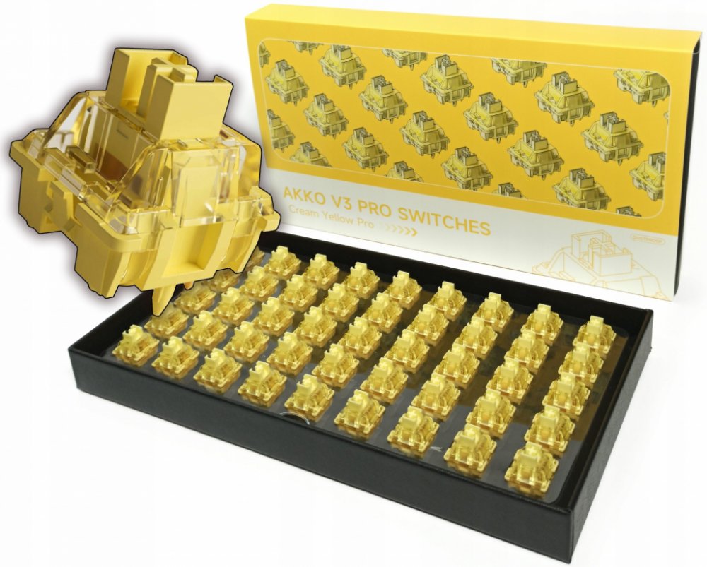 AKKO V3 Cream Yellow Pro Switch (45ks)Typ: LineárníPracovní síla: 50 ± 10gfCelkový zdvih: 3,3 mmPosun vpřed: 2,0 ± 0,6 mmHmatová poloha: N/AHmatová síla: N/A⌨【50gf V3 Cream Yellow Pro Lineární spínač】: Třetí generace spínačů Akko řady Cream, vyladěná a vylepšená pro verzi v2 spínače, s dlouhými pólovými hřídelemi pro stabilnější a lepší poklepávání.⌨【Vysoká kvalita a odolnost】: Společnost Akko zvolila vysoce kvalitní materiály - horní kryt z polykarbonátu, spodní kryt z nylonu PA66, hřídel z POM, pružina z poniklované nerezové oceli a listová pružina ze slitiny mědi s pozlacenými kontakty. Životnost přibližně 60 milionů stisknutí kláves na základě testů odolnosti v laboratoři.⌨【Integrovaná štěrbina LED】: Konstrukce horní světelné pozice. Spínače Akko mají sloty LED pro přizpůsobení/montáž LED kuliček a SMD kuliček. Kompatibilní s klávesnicemi orientovanými na sever a na jih.⌨【Vysoká kompatibilita】: Klávesové spínače Akko jsou 5pólové spínače, kompatibilní s většinou patic PCB klávesnic. Spínače jsou přizpůsobeny oblíbené struktuře Cherry MX, takže se hodí k většině sad kláves Cross Stiel. (+)⌨【Spínače jsou baleny jednotlivě pro větší stabilitu】: Jedno balení obsahuje 45 spínačů s plastovou vaničkou, ve které jsou spínače bezpečně uloženy a kterou lze v případě potřeby použít jako mazací stanici. Akko - V3 Cream yellow Pro switch Množství: 45 kusů. Spínače Akko V3 Cream Yellow Pro představují vrchol výkonu a přesnosti mechanických klávesnic. Tyto spínače, navržené s důrazem na detail, nově definují standard pro psaní a hraní her.Spínače Pro V3 Cream Yellow jsou navrženy pro bezkonkurenční odezvu a poskytují hmatově příjemný a zároveň plynulý stisk kláves, který zvyšuje produktivitu a herní výkon. Klávesnici lze flexibilně přizpůsobit vašim preferencím a vylepšit tak váš zážitek z práce na počítači.Spínače jsou určeny pro nadšence i profesionály a vyznačují se nejvyšší kvalitou provedení, která zajišťuje odolnost a spolehlivost pro nespočet hodin používání. Ať už vás čekají intenzivní herní seance nebo maratonské psaní, žluté spínače Pro V3 Cream nabízejí dokonalou rovnováhu mezi výkonem a pohodlím.Vylepšete svou klávesnici a dosáhněte nové úrovně přesnosti se spínači V3 Cream Yellow Pro. Přidejte se k elitním hráčům a písařům, kteří od svého hardwaru vyžadují jen to nejlepší. Pociťte ten rozdíl se značkou Akko. SpecifikaceTyp: LineárníCelkový zdvih: 3,3 mmPočáteční zdvih: 2,0 ± 0,6 mmKompatibilitaVhodné pro klávesy se standardním designem MX.Vhodná pro 5pinové klávesnice.Síla stlačení: 50 ± 10gf AKKO V3 Pro Cream Yellow Spínače, mechanické, 5-pinové, lineární, MX-Stem, 50g - 45 Stück (6925758625173)