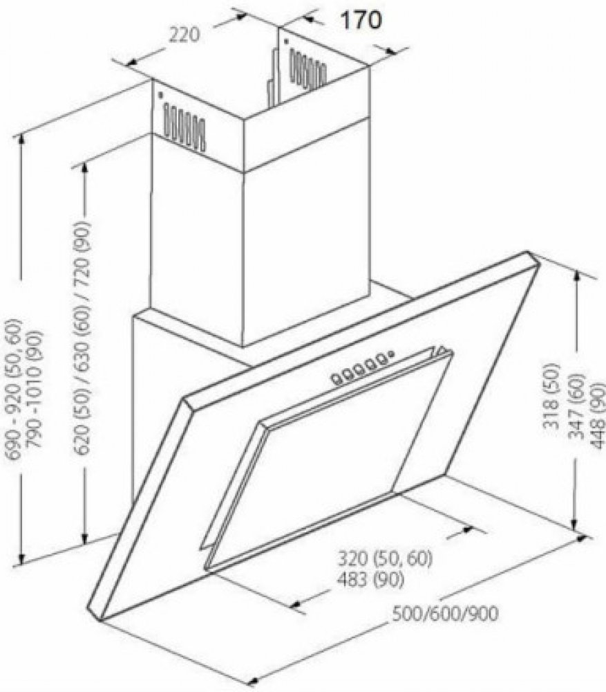 300 m3/hod. 72 dB Akpo C 104.8 W komínové skleněné/nerezové 50 cm 170 mm 2 kg mechanické 2 1 17 cm 92 cm bílé