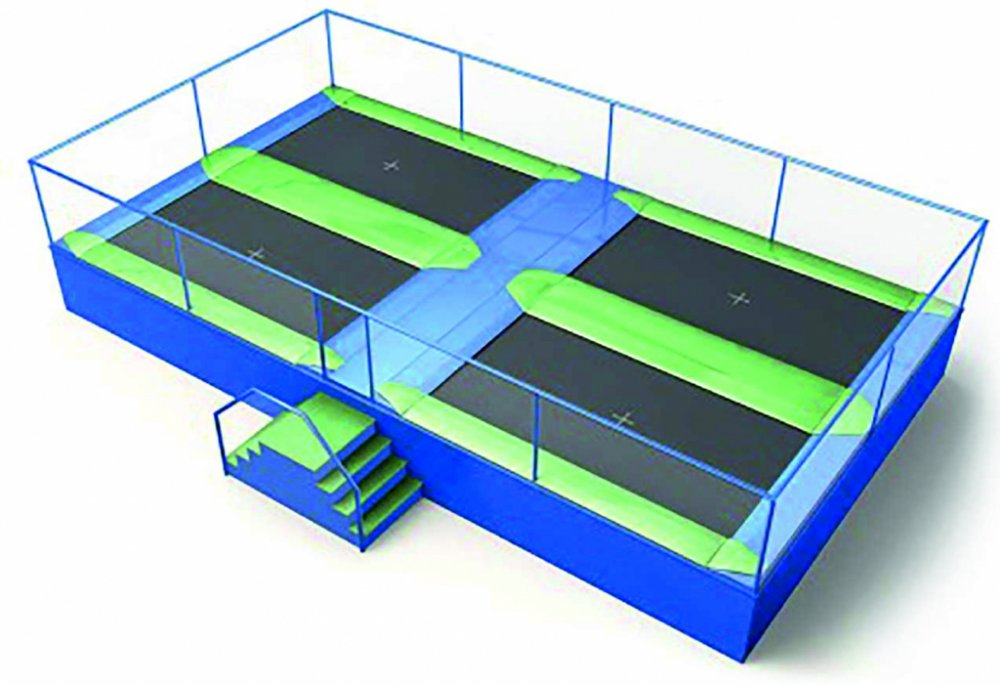 Pole trampolín je možno skládat po dvou vedle sebe (sudé počty polí), nebo i po jedné vedle sebe (sudé i liché počty polí)